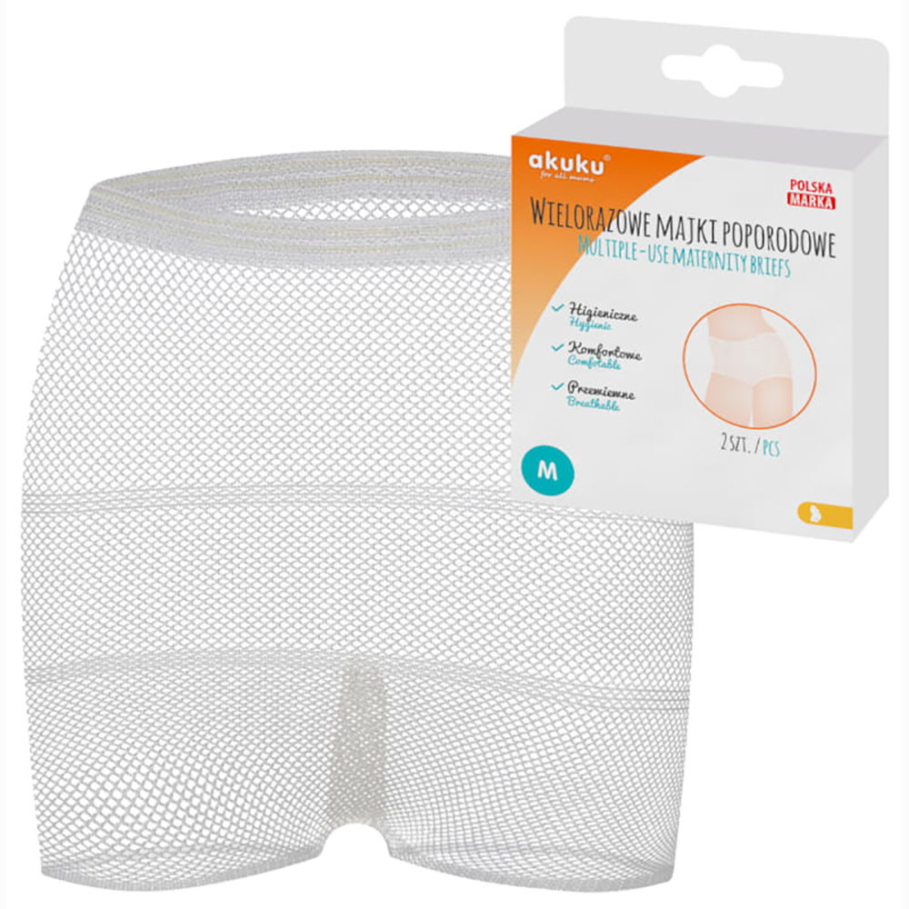 Hálós, higiénikus, többször használható szülés utáni, fehér színű bugyi.