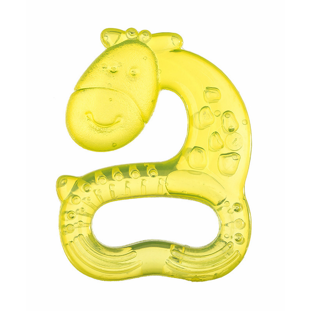 Hűvös desztillált vízzel töltött sárga zsiráf rágóka. Kiálló részei enyhítik a baba irritált ínyének fájdalmát. A közepén lévő nagy nyílásnak köszönhetően kényelmesen és könnyen megfogható a baba kis kezeivel.