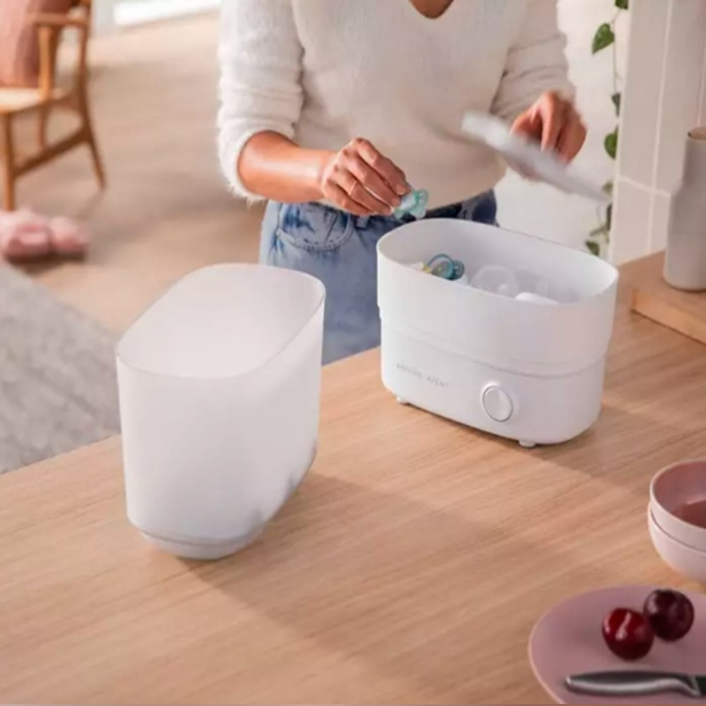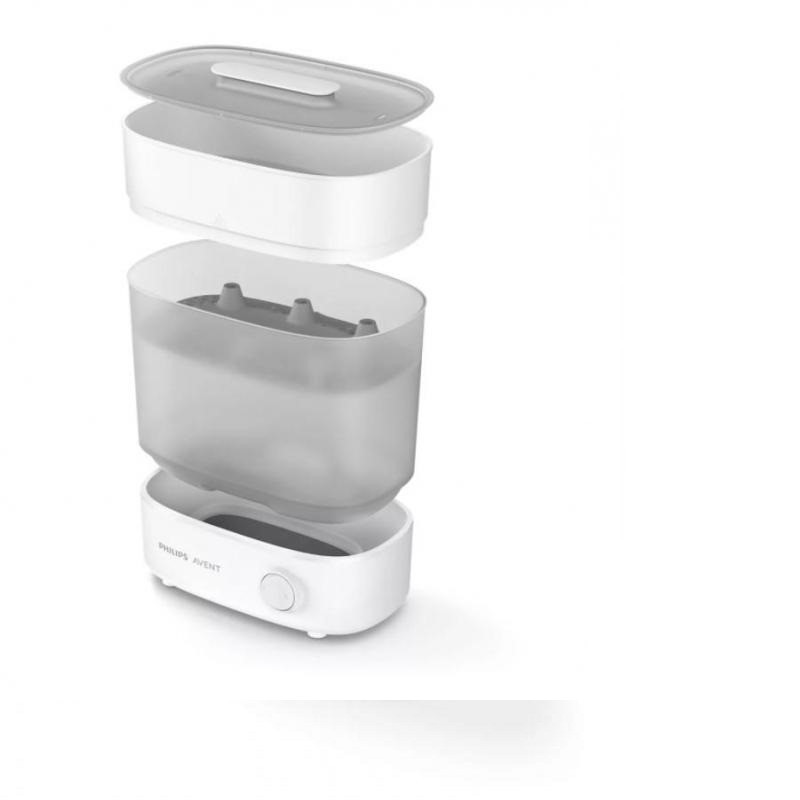 3. Gyors és biztonságos sterilizálás vegyszerek nélkül1. Amíg nem nyitja ki az eszköz fedelét, a benne lévő tartalom akár 24 órán keresztül steril marad. 4. Beépített csepegtető tálca. Az új csepptálca megvédi a fűtőelemet az anyatejcseppektől, csökkentve ezzel a kellemetlen szagok esetleges kialakulását.