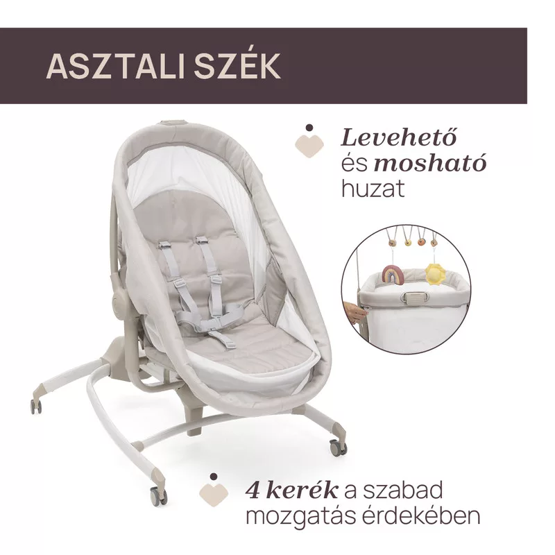 BABY HUG ARMONIA 4 IN 1 (KÖRBE HÁLÓS OLDALLAL) BABABÖLCSŐ, PIHENŐ,-ETETŐ,- ASZTALISZÉK 0-36 hónapos korig