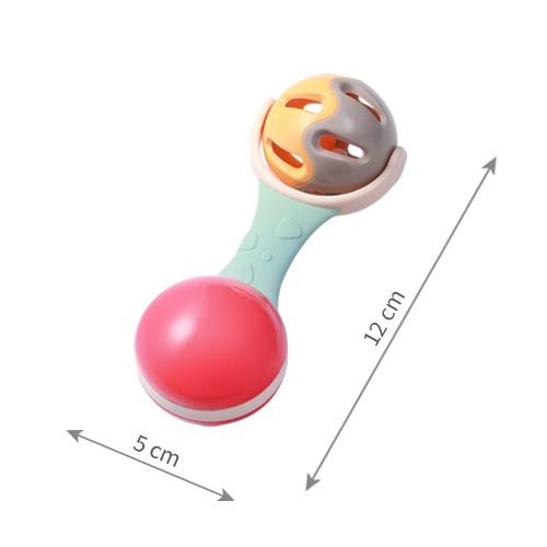 A csörgő praktikus felépítésének köszönhetően a baba könnyedén tudja a kis kezében tartani.