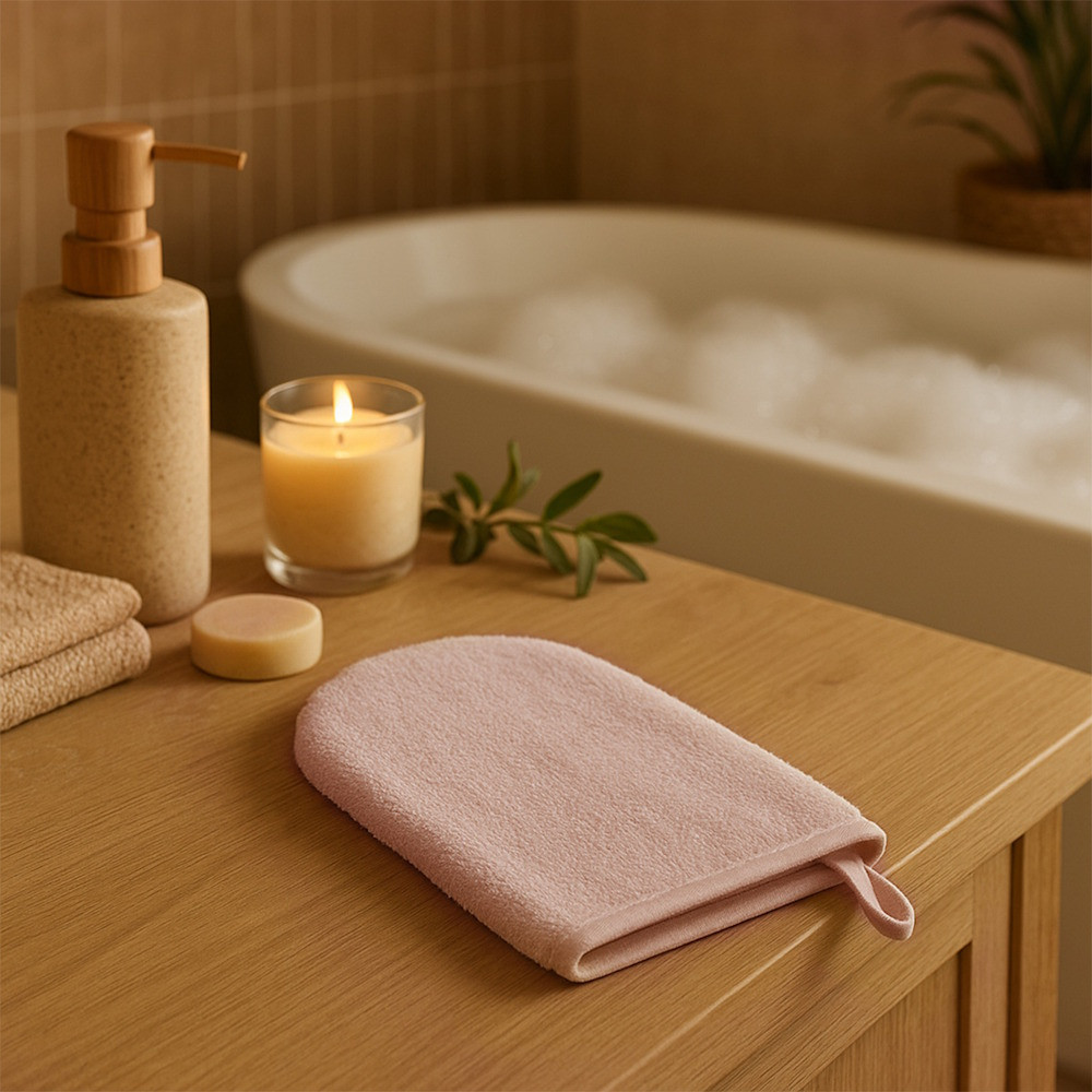 Bambusz mosdókesztyű