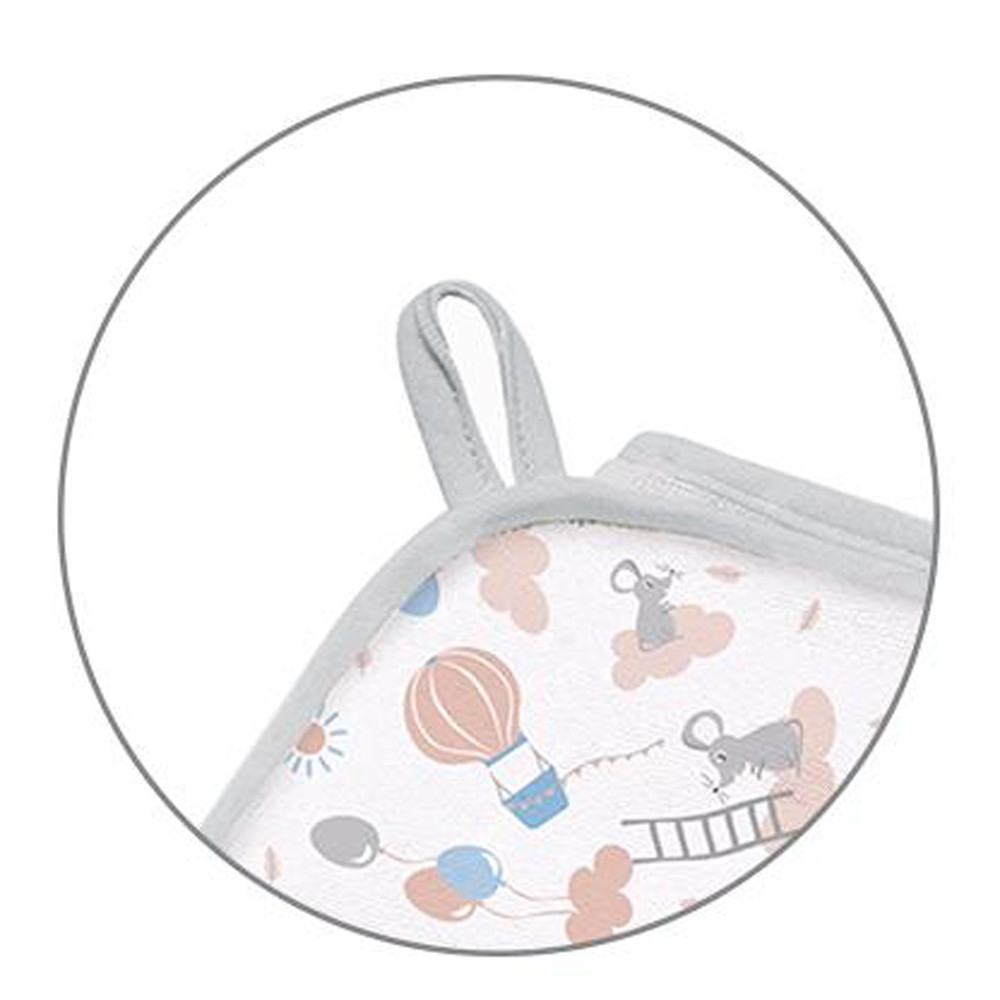 A gyermek kényelme érdekében a kapucni nem frottír, hanem puha, 100% pamut anyag. A BabyOno fürdőlepedő akasztója megkönnyíti a szárítást.