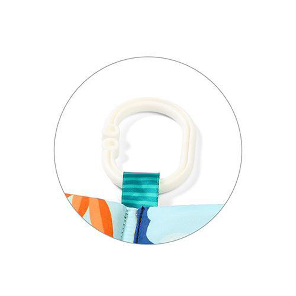 A speciális akasztónak köszönhetően a könyvet a kiságyra, babakocsira vagy az autó biztonsági ülésére rögzítheti. Ezért viheti a játékot sétálni vagy autóval kirándulni.
