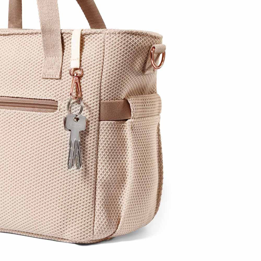 Nem kell sietned, hogy kulcsot vagy cumit keress a táskában. A praktikus tartónak köszönhetően mindig kéznél tarthatod tárgyaid.