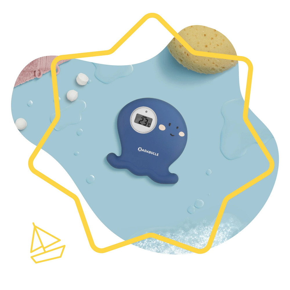 A szobákban és a fürdőkádban egyaránt használható Badabulle Octopus 2in1 digitális hőmérő ideális a kicsi biztonsága érdekében. Fontos, hogy segítsen pontosan megmérni a kicsi fürdővíz hőmérsékletét, mivel a babák bőre érzékenyebb, mint a felnőtteké, így a baba hajlamosabb a bőrirritációra vagy égési sérülésekre, ha a víz túl forró. A gyönyörű polip alakú hőmérő vizuálisan figyelmeztet, ha a víz túl forró, és a beépített LCD képernyő jelzi a víz vagy a szoba hőmérsékletét. Puha anyagból készült, lekerekített sarkokkal, így nincs veszélye annak, hogy megsérüljön a baba, ha megragadja. Automatikus kikapcsolás az akkumulátor kímélése érdekében.