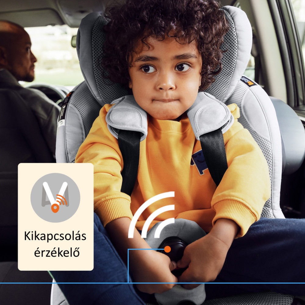 A világ első teljesen integrált digitális biztonsági rendszere értesít, ha gyermeked vezetés közben kicsatolja magát, és ha véletlenül az autóban hagyod őt. (Ebben különbözik ez az ülés a BeSafe iZi Turn biztonsági üléstől.)