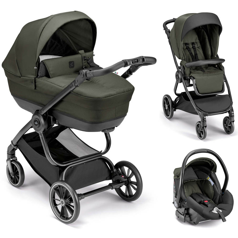 Tartalma: Techno Deluxe váz, mózeskosár, babakocsi ülés, hordozó, pelenkázótáska.