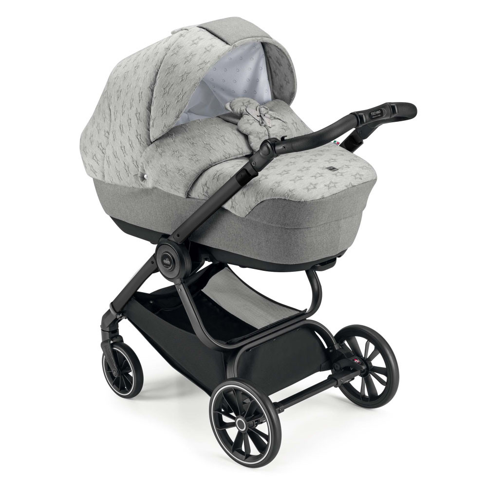 Tartalma: Techno Deluxe váz, mózeskosár, babakocsi ülés, hordozó, pelenkázótáska.