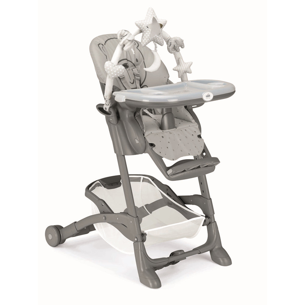 - 2 helyre (a karfákra vagy az oldalsó karokra) felszerelhető játékhíd, levehető zörgő/csörgő/sípoló/tükrös játékokkal