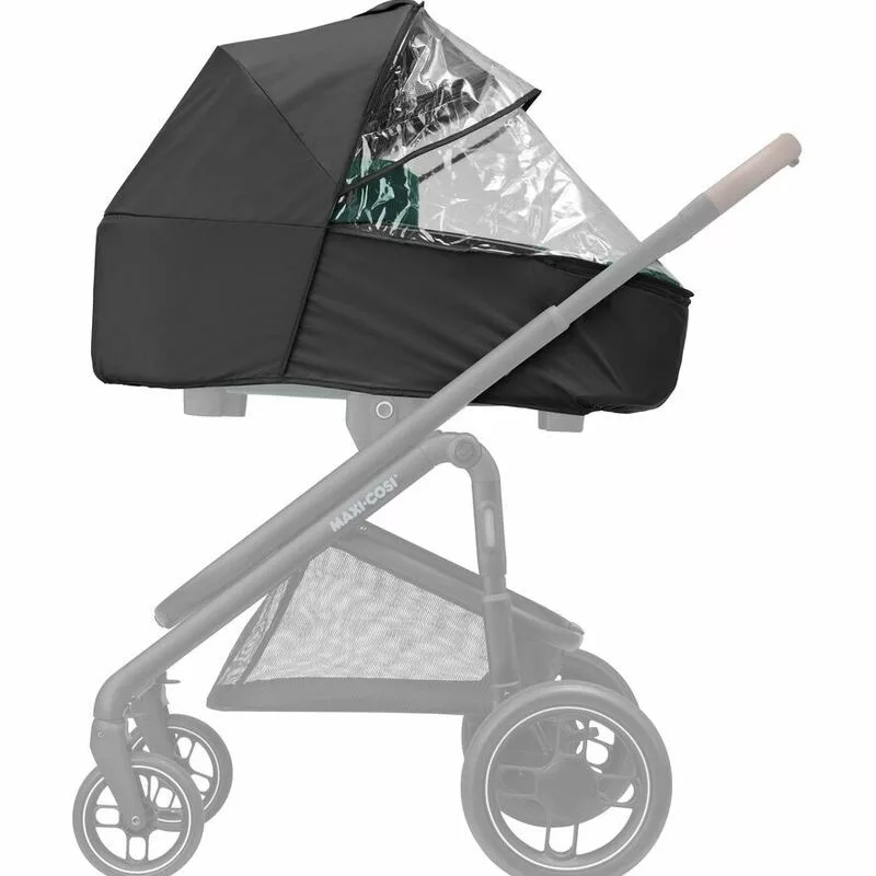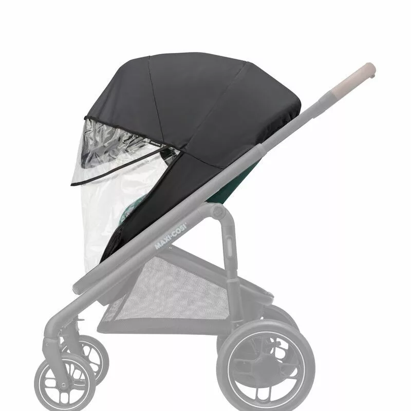 Ez a teljesen szellőző és átlátszó esővédő strapabíró anyagokból készült, és könnyen ráhúzható a Maxi-Cosi babakocsikra.
