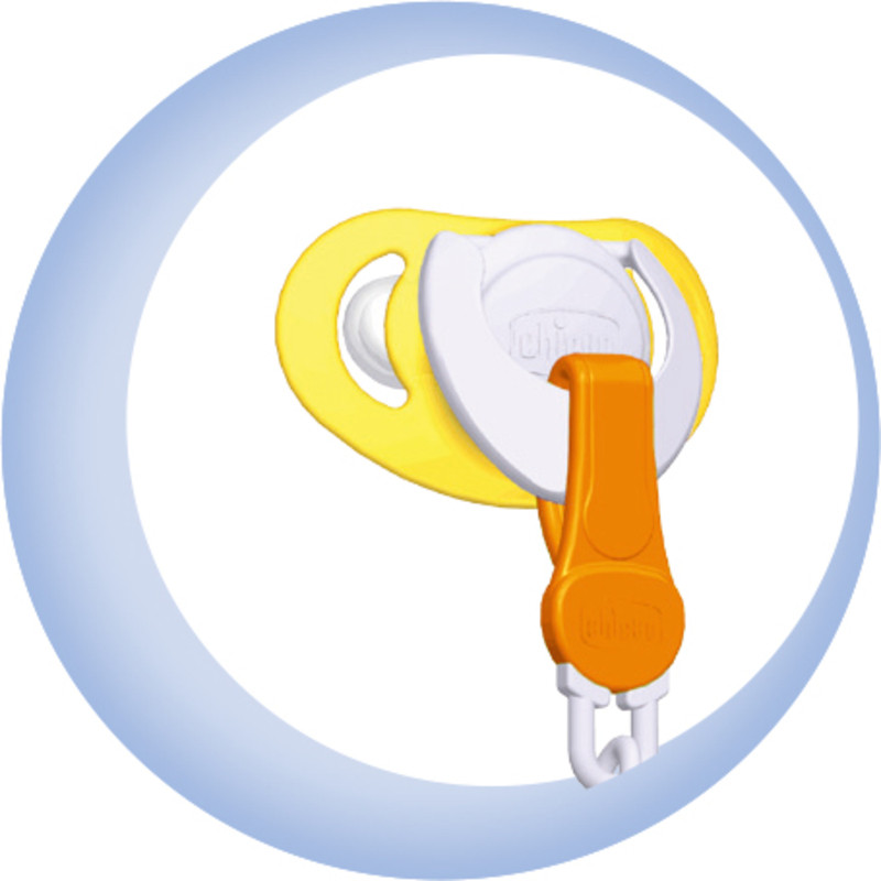 A baba ruhájához csíptethető, a végén a cumival, így a baba nem hagyja el a cumiját.