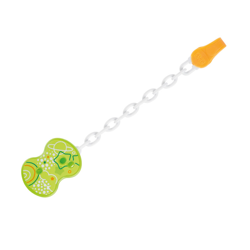 A baba ruhájához csíptethető, a végén a cumival, így a baba nem hagyja el a cumiját.