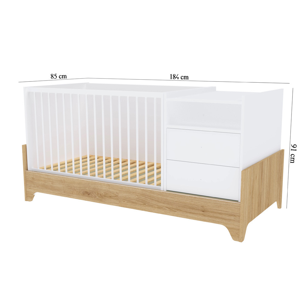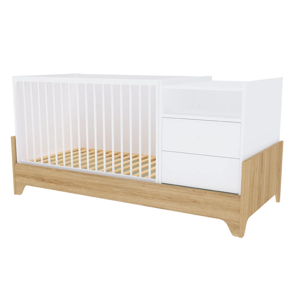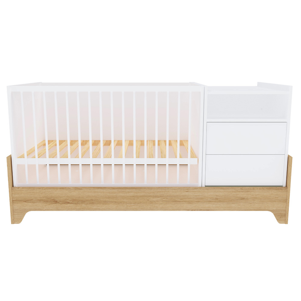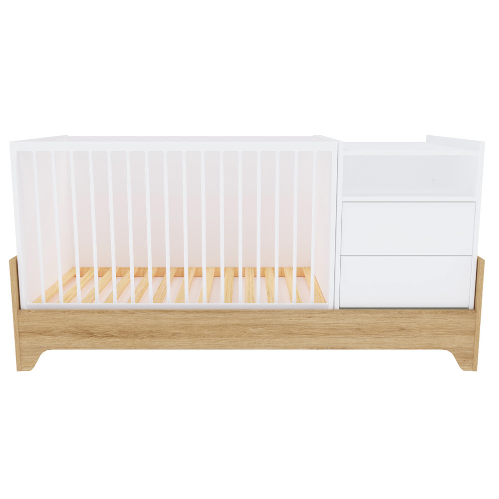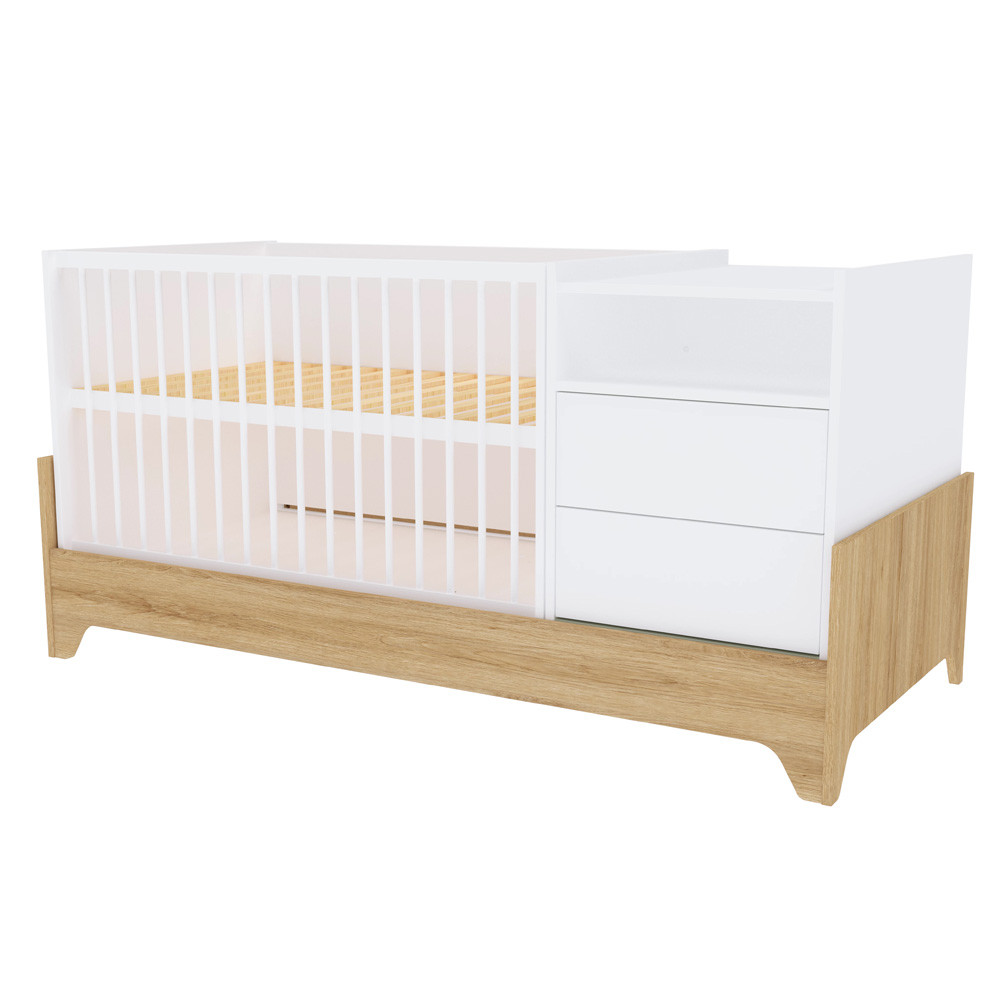 Letisztult formavilágával és modern vonalaival a korszerű szülők kedvence, miközben színvilága a fehér és a természetes famintázat harmóniája szinte minden babaszobába tökéletesen illik.