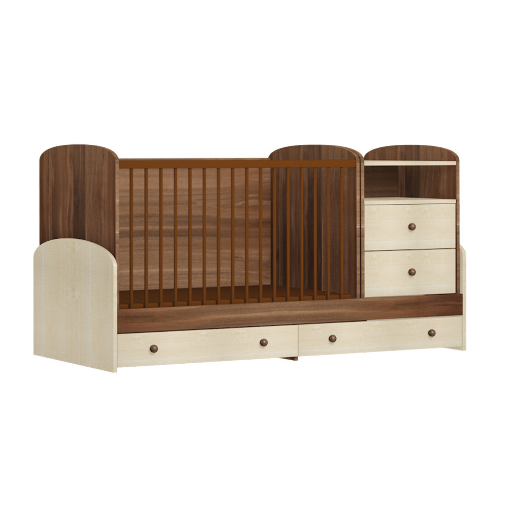 A legsokoldalúbb gyermekágyunk. Amellett, hogy a kezdeti időszakban babaágy és pelenkázó komód egyben, később még ifjúsági ággyá, valamint íróasztallá is alakítható. Mikor már nem használja a gyermek a kiságyat, komódot, akkor csak le kell venni az ifjúsági ágyról a két elemet. És itt jön a csavar: az ágyat el kell forgatni 90°-kal, a komódot pedig berakni alá: és kész az íróasztal! Továbbá kiegészítőként rendelhető hozzá kiságy és komód magasító, így ha egy második gyermek is szeretné használni a kombi ágyat, de a nagyobbik már megörökölte az alsó részen található ifjúsági ágyat, akkor az említett magasítókkal ugyanolyan magasságba lehet alakítani a kiságyat és a komódot, mint eredetileg. Így akár egy bútort két gyermek is tud egyszerre használni!