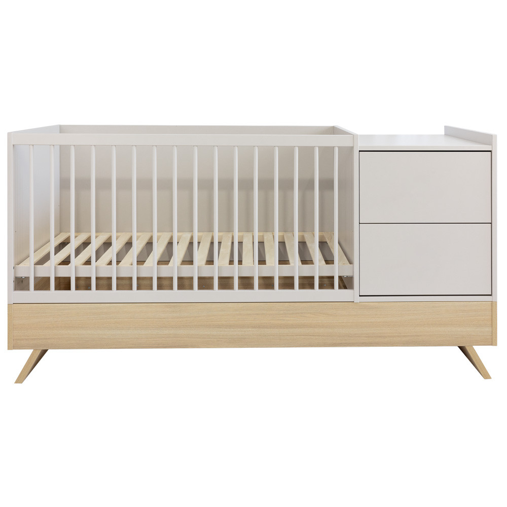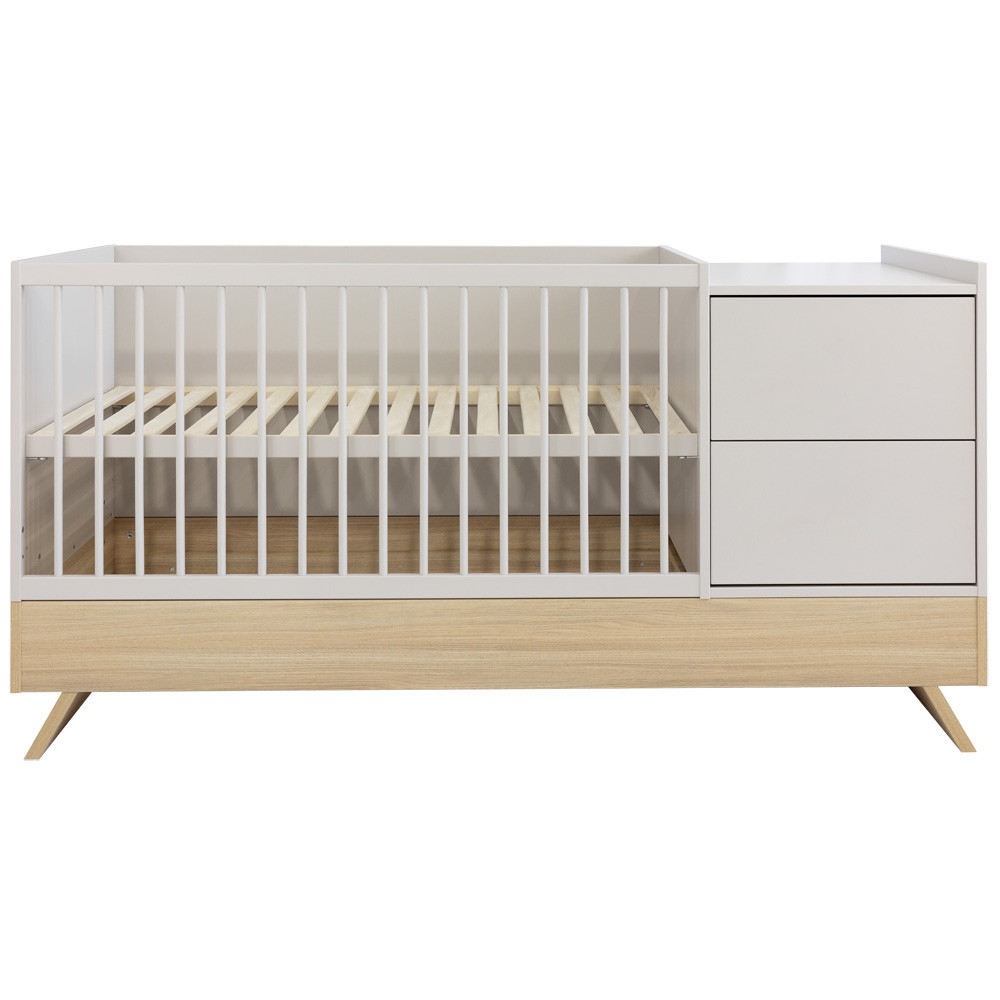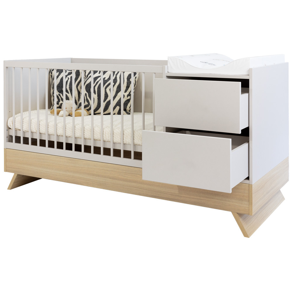 A Sienna Cashmere bútorcsalád új tagja nem csupán szemet gyönyörködtető megjelenésével hódít, hanem kifinomult, átgondolt funkcióival is meggyőz. A dylan tölgy lábakon álló kombi babaágy elegáns kasmír bútorlappal egészül ki, amely tökéletes harmóniát teremt a természetes és modern stílus között.