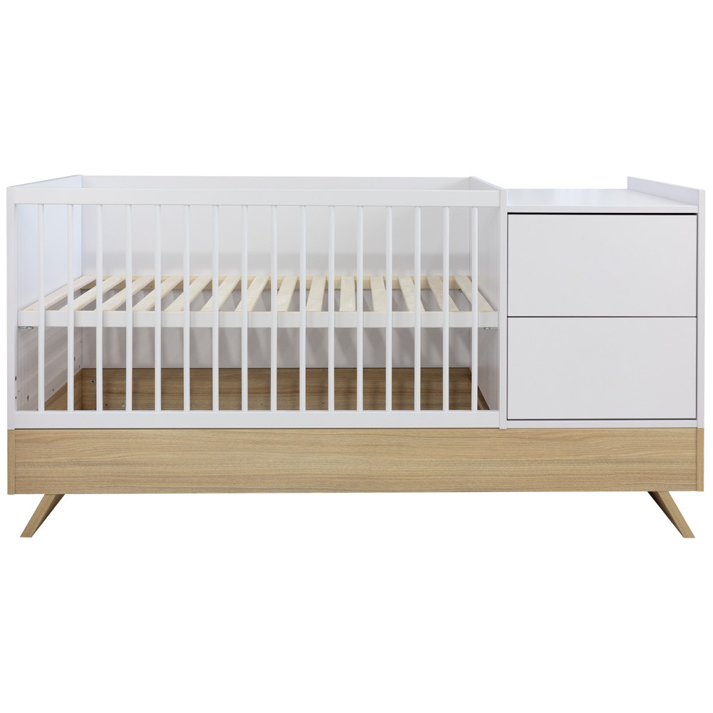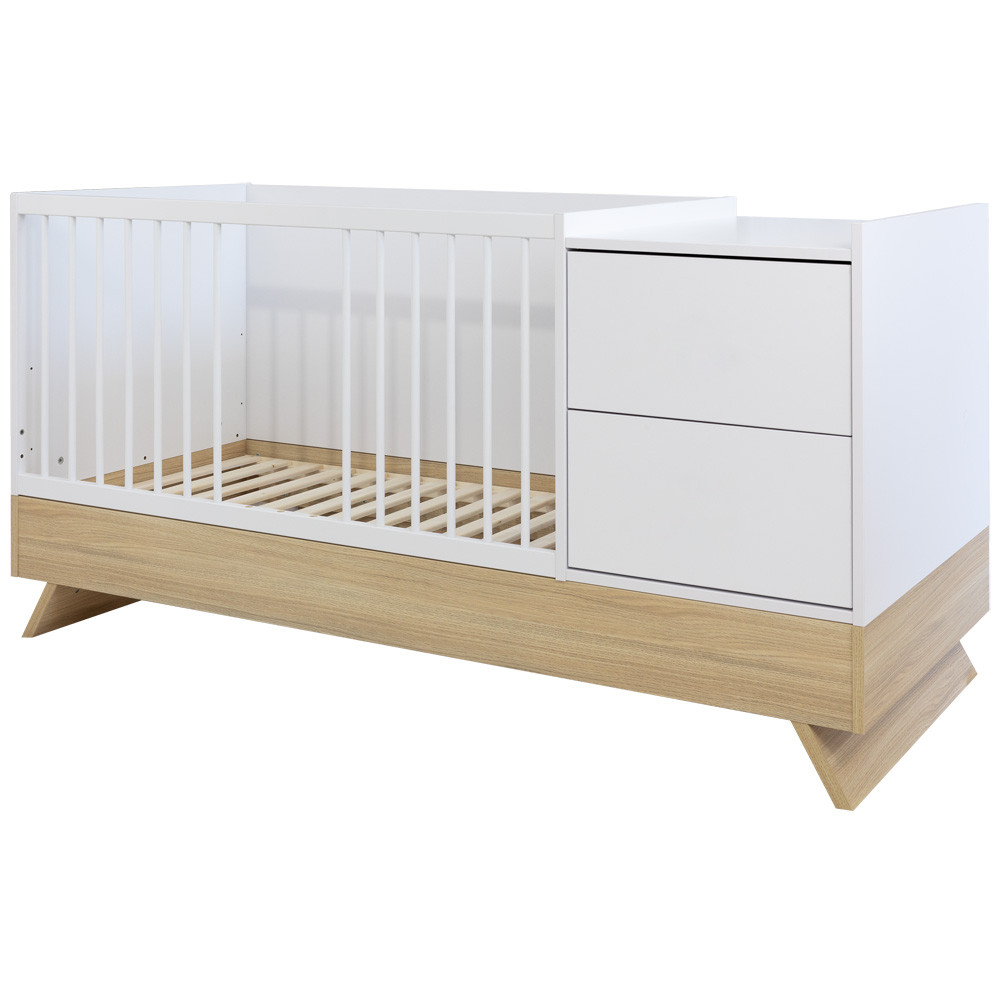 A Sienna White bútorcsalád új tagja nem csupán szemet gyönyörködtető megjelenésével hódít, hanem kifinomult, átgondolt funkcióival is meggyőz. A dylan tölgy lábakon álló kombi babaágy elegáns kasmír bútorlappal egészül ki, amely tökéletes harmóniát teremt a természetes és modern stílus között.