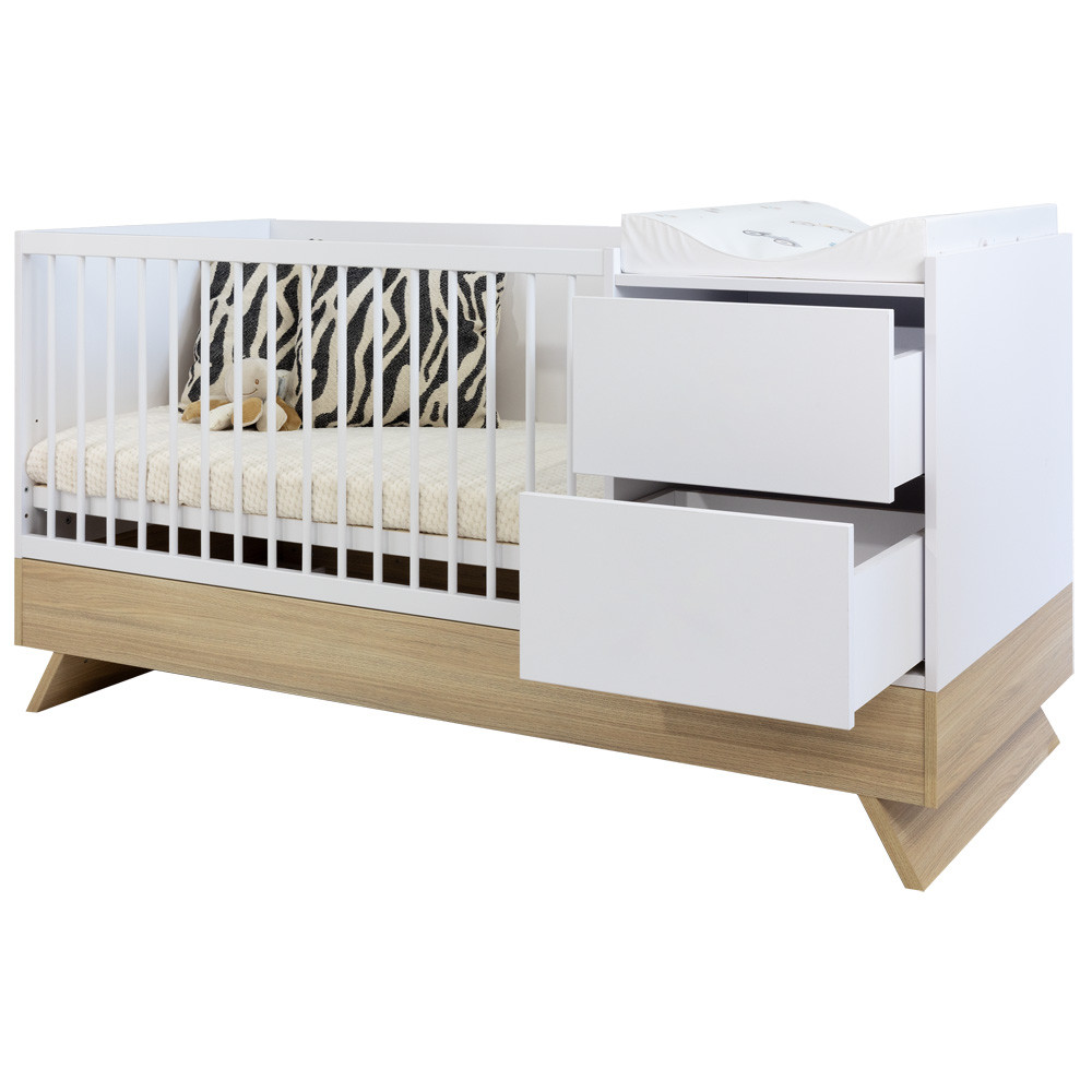Ami pedig igazán sokoldalúvá teszi: a bútor 3 az 1-ben funkciót kínál, mivel babaágy és komódként használható, később ifjúsági ággyá és praktikus tárolószekrénnyé alakítható – így hosszú éveken át a gyerekszoba része maradhat.