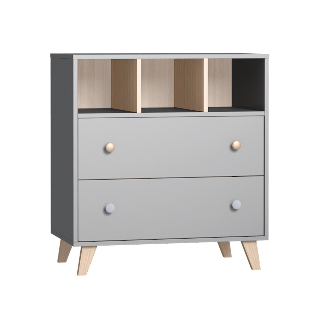 A babaszoba elengedhetetlen eleme. Úgy lett kialakítva, hogy viszonylag kis helyen is elférjen, mégis a lehető legnagyobb segítséget nyújtsa a friss szülőknek. Magassága, pakolófelületei, variálhatósága mind a szülők igényei alapján lettek kialakítva. Nem csak tárolóként funkcionál, hanem egy pelenkázó toldalék vásárlásával pelenkázó komódként használható a komód teteje.