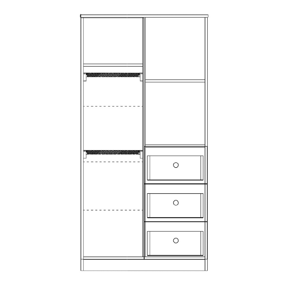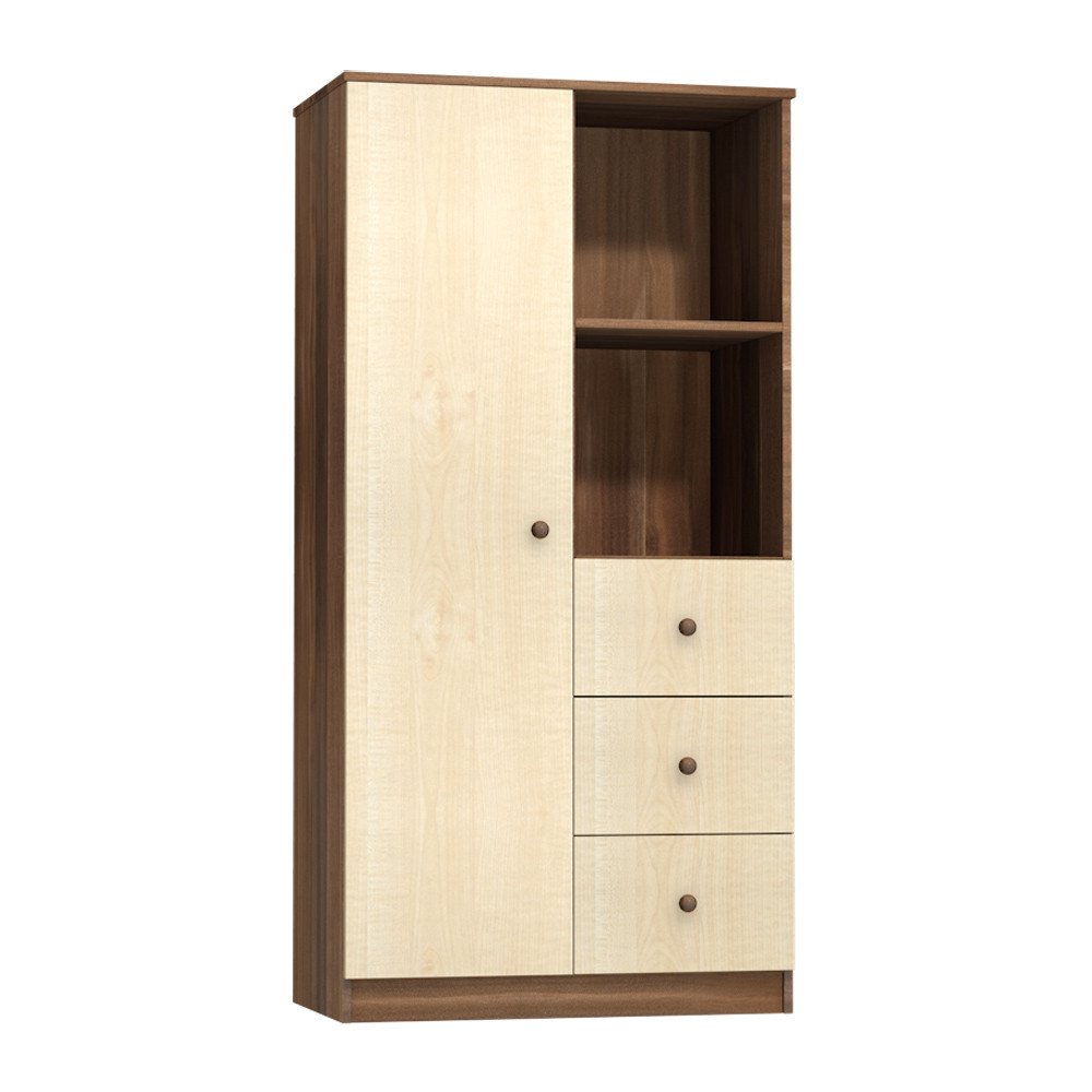 Sokoldalú nagyszekrény különböző tárolókkal. Méretét tekintve ideális kis- és nagyszobákba is egyaránt. Ajtó, fiókok, és nyitott polc is rendelkezésre állnak a tárolásra, így mindennek meg lesz a helye. Kiegészítőként pedig még plusz polcokat is lehet hozzá rendelni.