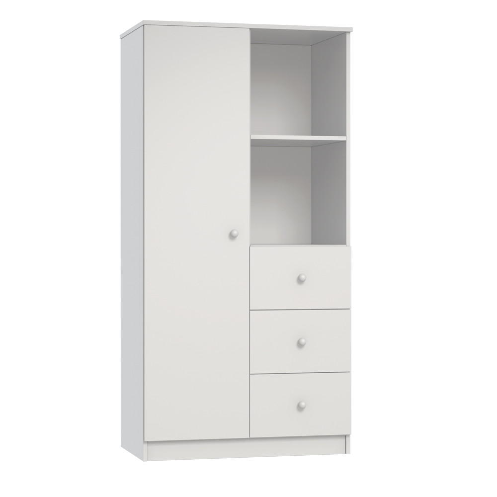Sokoldalú nagyszekrény különböző tárolókkal. Méretét tekintve ideális kis- és nagyszobákba is egyaránt. Ajtó, fiókok, és nyitott polc is rendelkezésre állnak a tárolásra, így mindennek meg lesz a helye. Kiegészítőként pedig még plusz polcokat is lehet hozzá rendelni.