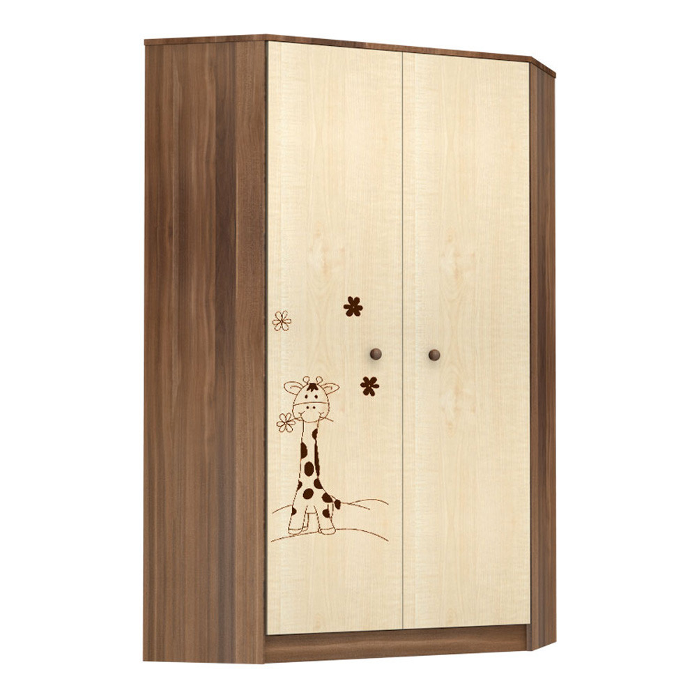 Az egyik legpraktikusabb bútorelemünk, mivel ideális megoldást nyújt a gyermek összes holmijának tárolására. Legyen az síruha, takaró, vagy hálózsák, a sarokszekrény olyan nagy pakolófelülettel rendelkezik, hogy mindent elnyel. Polcos, illetve akasztós pakolórész is található az ajtók mögött. A termékre speciális eljárással zsiráf minta kerül elhelyezésre az ajtóra.