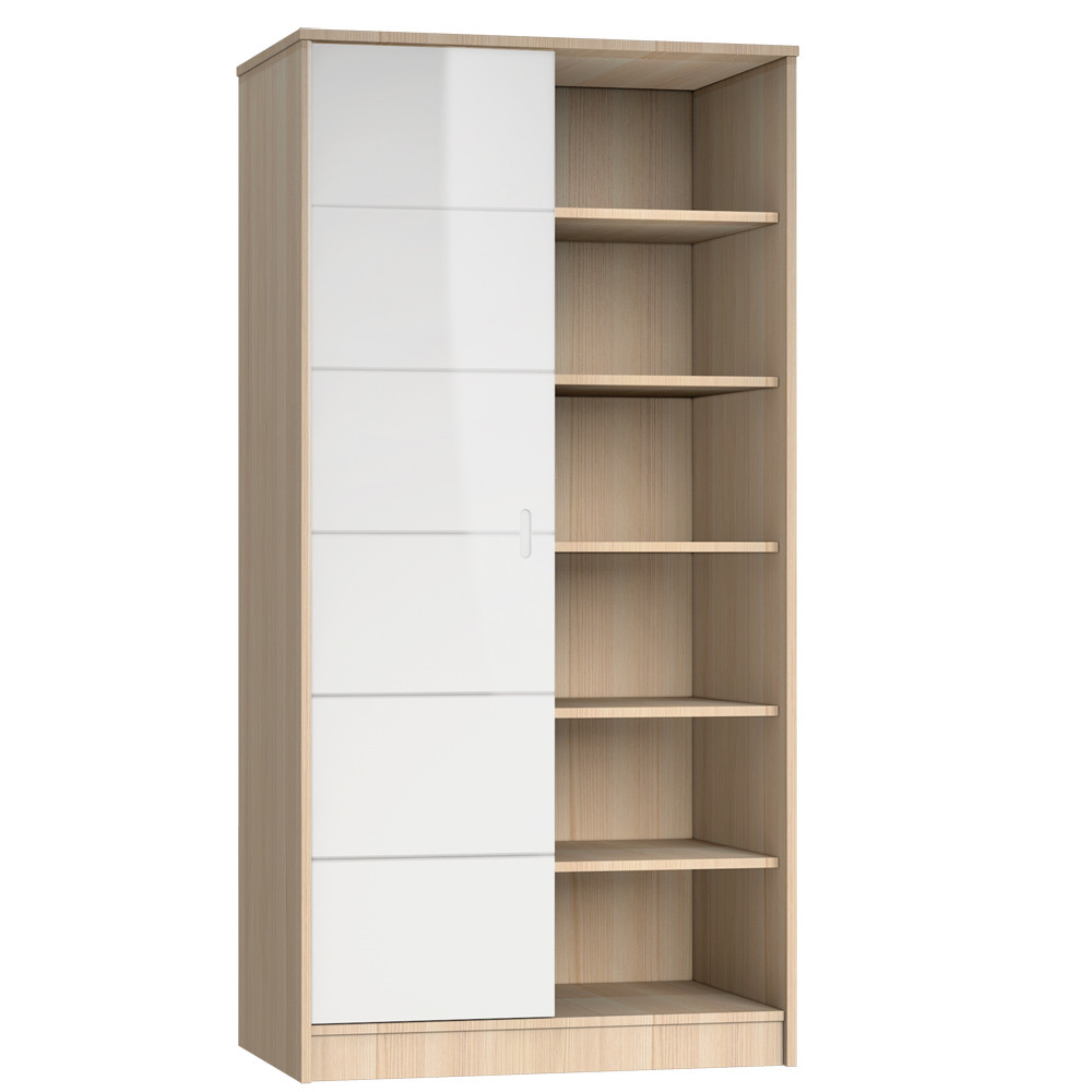 A kedvelt tolóajtós szekrények úgy biztosítanak bőséges tárolóhelyet a szobában hogy kisebb térben is tökéletesen funkcionálnak. A 2 osztású szekrény kiváló választás, hiszen a gyermek kezdeti holmijai elférnek benne. Remekül variálható a bútorcsalád többi elemével, melyből a gyermekek számára megunhatatlan gyerekszoba hozható létre. A szekrény belső pakolófelülete igény szerint alakítható akasztós, vagy polcos kivitelűre. Sőt, ha szükséges, plusz polc rendelésére is van lehetőség. A termék frontja magasfényű festett MDF-ből készül, míg a bútor többi része bútorlapból.