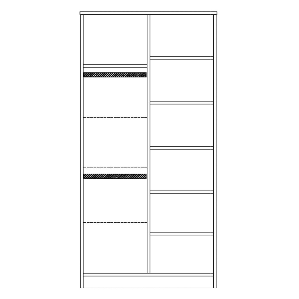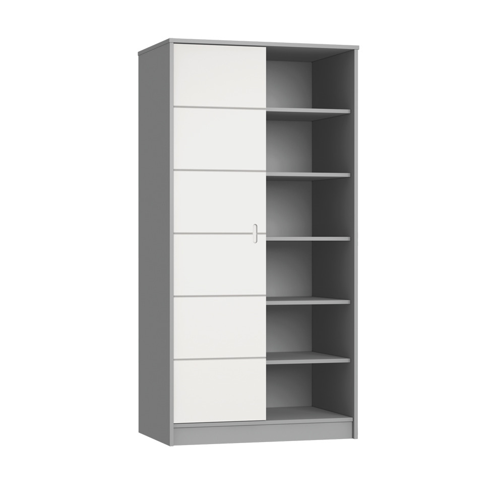 A kedvelt tolóajtós szekrények úgy biztosítanak bőséges tárolóhelyet a szobában hogy kisebb térben is tökéletesen funkcionálnak. A 2 osztású szekrény kiváló választás, hiszen a gyermek kezdeti holmijai elférnek benne. Remekül variálható a bútorcsalád többi elemével, melyből a gyermekek számára megunhatatlan gyerekszoba hozható létre. A szekrény belső pakolófelülete igény szerint alakítható akasztós, vagy polcos kivitelűre. Sőt, ha szükséges, plusz polc rendelésére is van lehetőség. A termék frontja magasfényű festett MDF-ből készül, míg a bútor többi része bútorlapból.