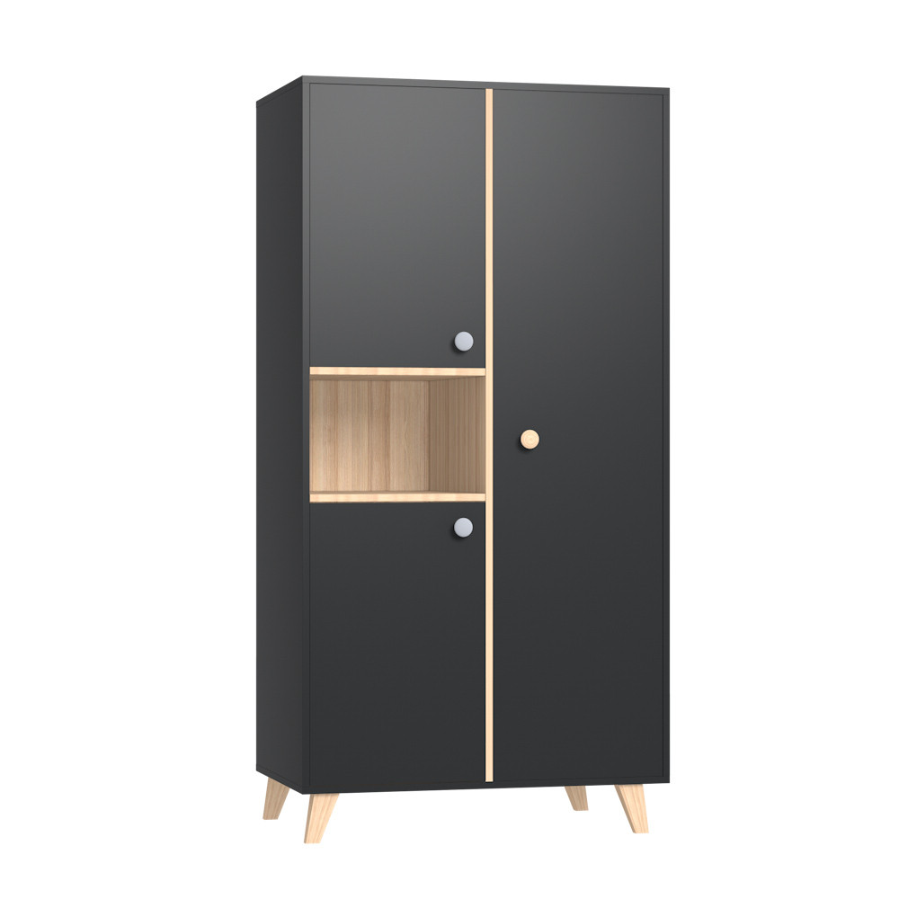 2 ajtós nagyszekrény, mely kiválóan alkalmas a gyermek holmijának tárolására a kezdeti időszaktól kezdve, egészen ifjú korig. Remekül variálható a bútorcsalád többi elemével, melyből a gyermekek számára megunhatatlan gyerekszoba hozható létre. A szekrény belső pakolófelülete igény szerint alakítható akasztós, vagy polcos kivitelűre. Sőt, ha szükséges, plusz polc rendelésére is van lehetőség.