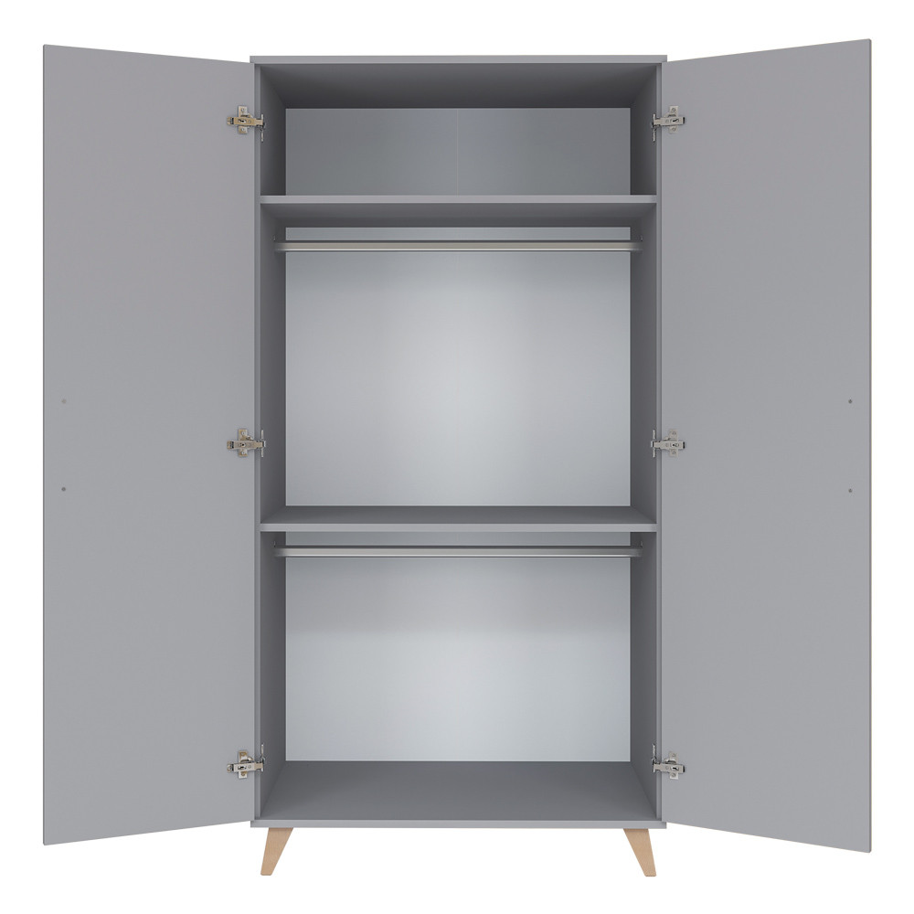 A kétosztású szekrény ideális választás, hiszen bőséges helyet biztosít kisbabád első holmijainak. Tökéletesen kombinálható a bútorcsalád többi darabjával, így könnyedén kialakítható egy olyan gyerekszoba, amit a kicsik soha nem unnak meg. A szekrény belső tere rugalmasan alakítható: választhatsz akasztós vagy polcos elrendezést és saját igényeiteknek megfelelően tudod azt alakítani.