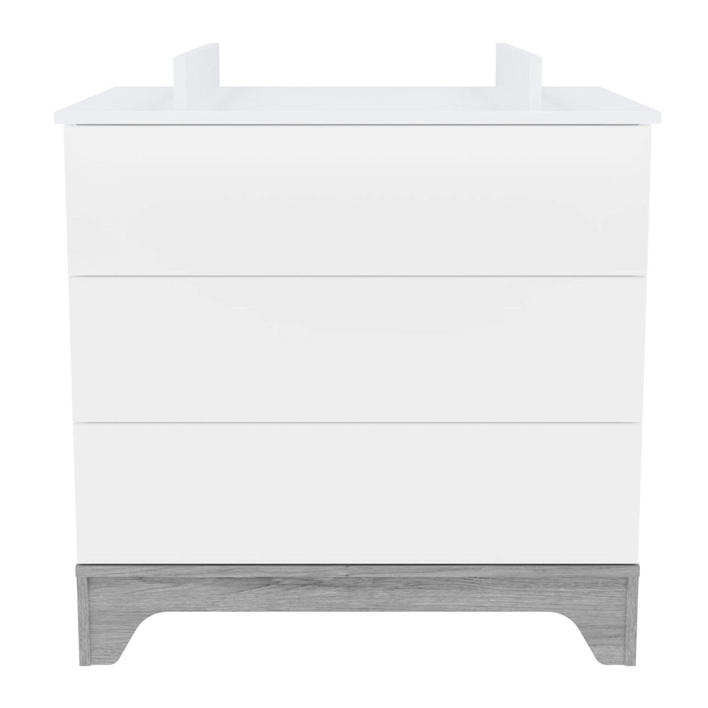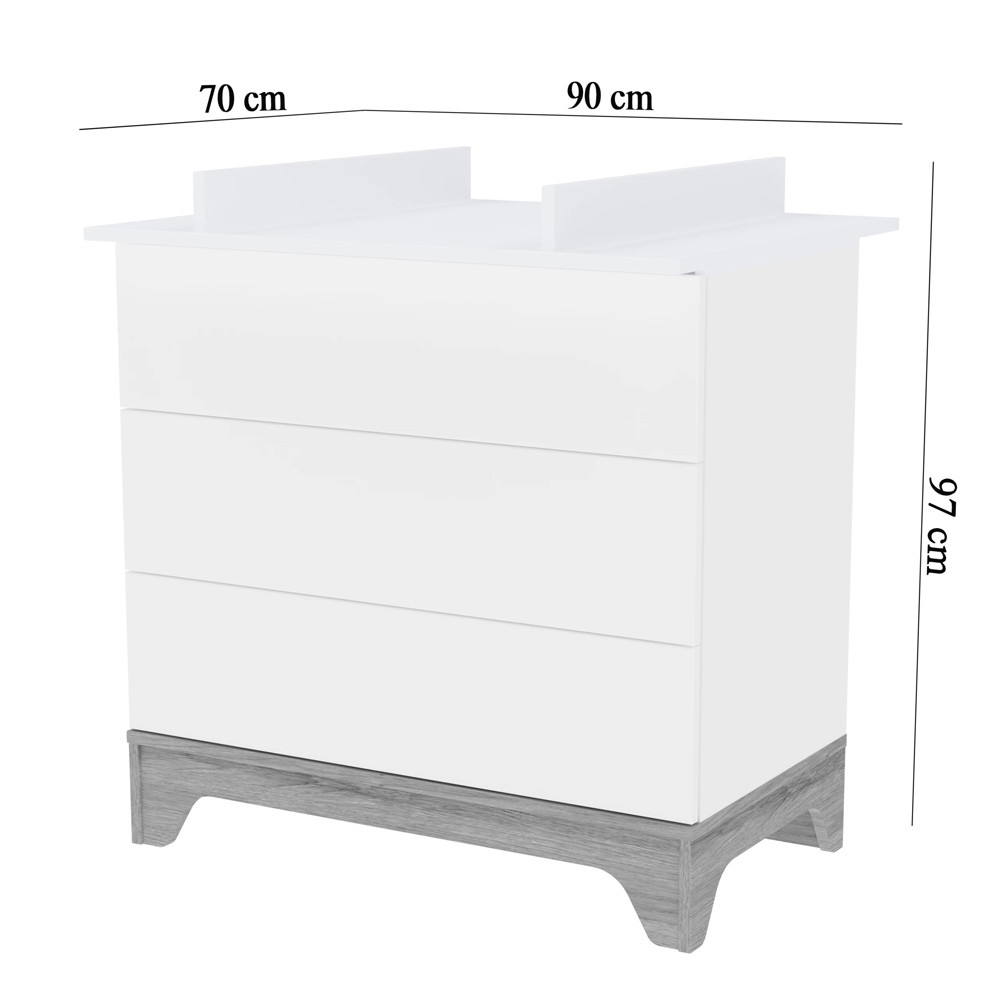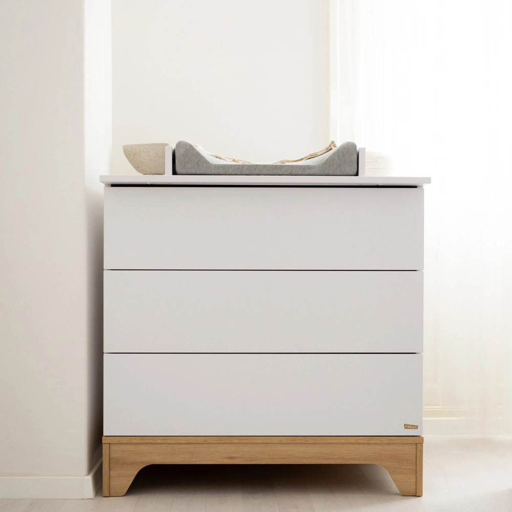 Letisztult formavilágával és modern vonalaival a korszerű szülők kedvence, miközben színvilága a fehér és a természetes famintázat harmóniája szinte minden babaszobába tökéletesen illik.