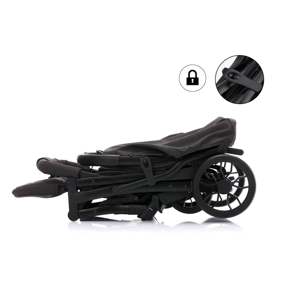 Rugós és 360°-ban elforgatható első kerekeivel, valamint a nagyméretű hátsó kerekeivel minden felületet gond nélkül ural. A 2 pozícióba állítható lábtámasz és a külön állítható háttámla a kicsi igényeihez igazodik. Ha gyermeked séta közben szeretne szunyókálni, a háttámlát fekvő pozícióba, a lábtartót pedig a legfelső helyzetbe állíthatod. Ez kényelmes fekvőfelületet biztosít a gyerkőc számára. A kihúzható tető árnyékot és megfelelő védelmet nyújt a nap és a szél ellen. A párnázott 5 pontos biztonsági övnek és a kivehető első kapaszkodónak köszönhetően a gyermek mindig biztonságban lehet útközben. A séta közbeni megállások során a könnyen működtethető rögzítőfék gondoskodik arról, hogy a babakocsi megbízhatóan megálljon. Ha a babakocsi nincs használatban, egy kézzel gyorsan és egyszerűen összecsukható.