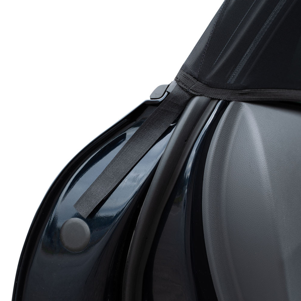 A napellenző függöny optimális védelmet nyújt gyermekének a napsugárzás ellen rövid és hosszú autóutakon. Gyorsan és könnyen ráhúzható egy nyitott hátsó ajtóra, véd a közvetlen napfénytől és a hőtől. További előnye, hogy az ablak menet közben is nyitható és zárható anélkül, hogy le kellene venni a napellenző függönyt , mivel az a teljes autóajtóra húzódik, és nem közvetlenül az ablakra. Ha az ablak nyitva van, védelmet nyújt a hívatlan vendégek ellen is, mint például a szúnyogok, rovarok stb.