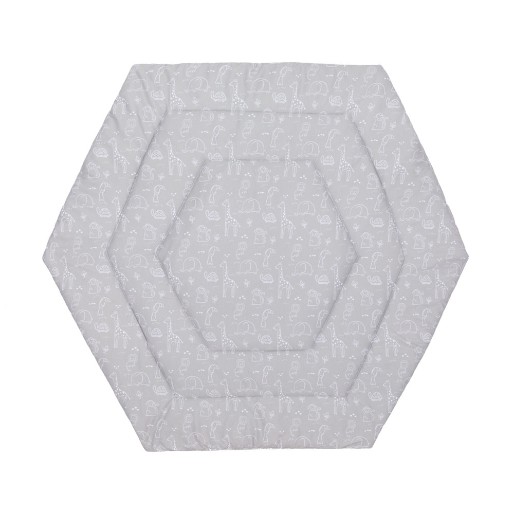 A betét különösen puha és bújós. Ezzel az ennivalóan puha járóka betéttel garantáltan jól érzi majd magát gyermeke. Minden 124 cm átmérőjű hatszögletű járókához alkalmas. A külső anyag 100% pamutból készült, és poliészterrel van töltve. Csak a betét teszi teljessé és kényelmessé a járókát. A járókabetét igény szerint 30°C-on mosható.