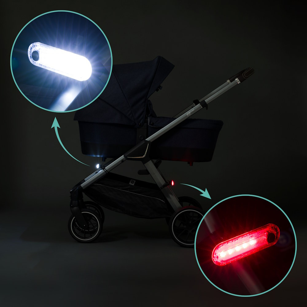 Az Easy Fix biztonsági lámpával a babakocsid a sötétben is jól látható marad. A szett két kompakt LED-lámpát tartalmaz: egy fehér első lámpát az előre irányuló fényhez, valamint egy piros hátsó lámpát, amely jól láthatóvá tesz a forgalomban.