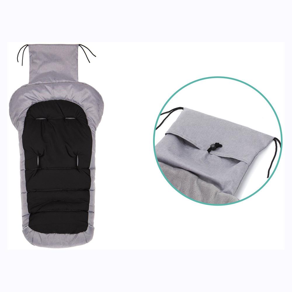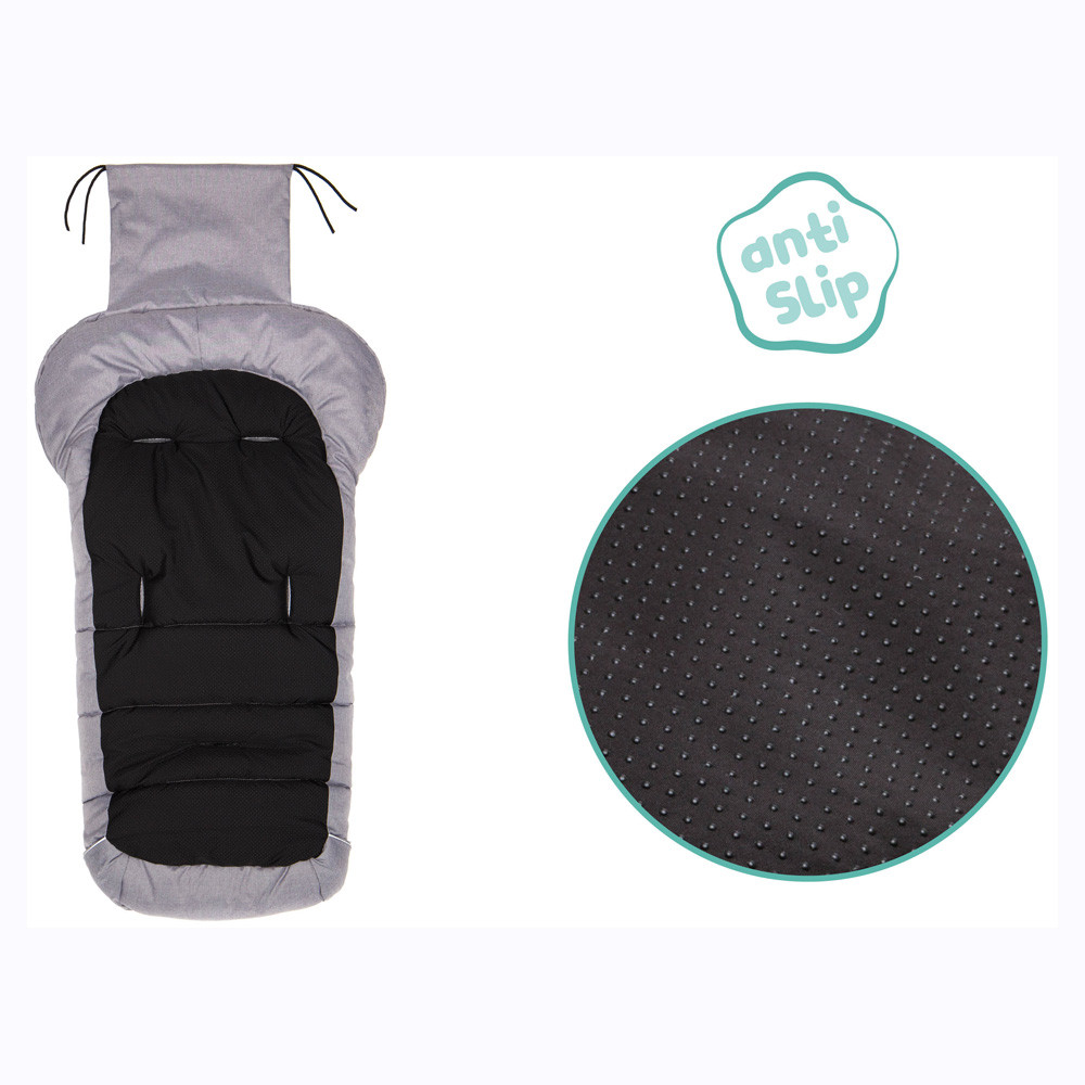 Az 5 övnyílás biztonságosan tartja a K2 lábzsákot a babakocsiban. A csúszásgátló hátlap stabil illeszkedést is biztosít.