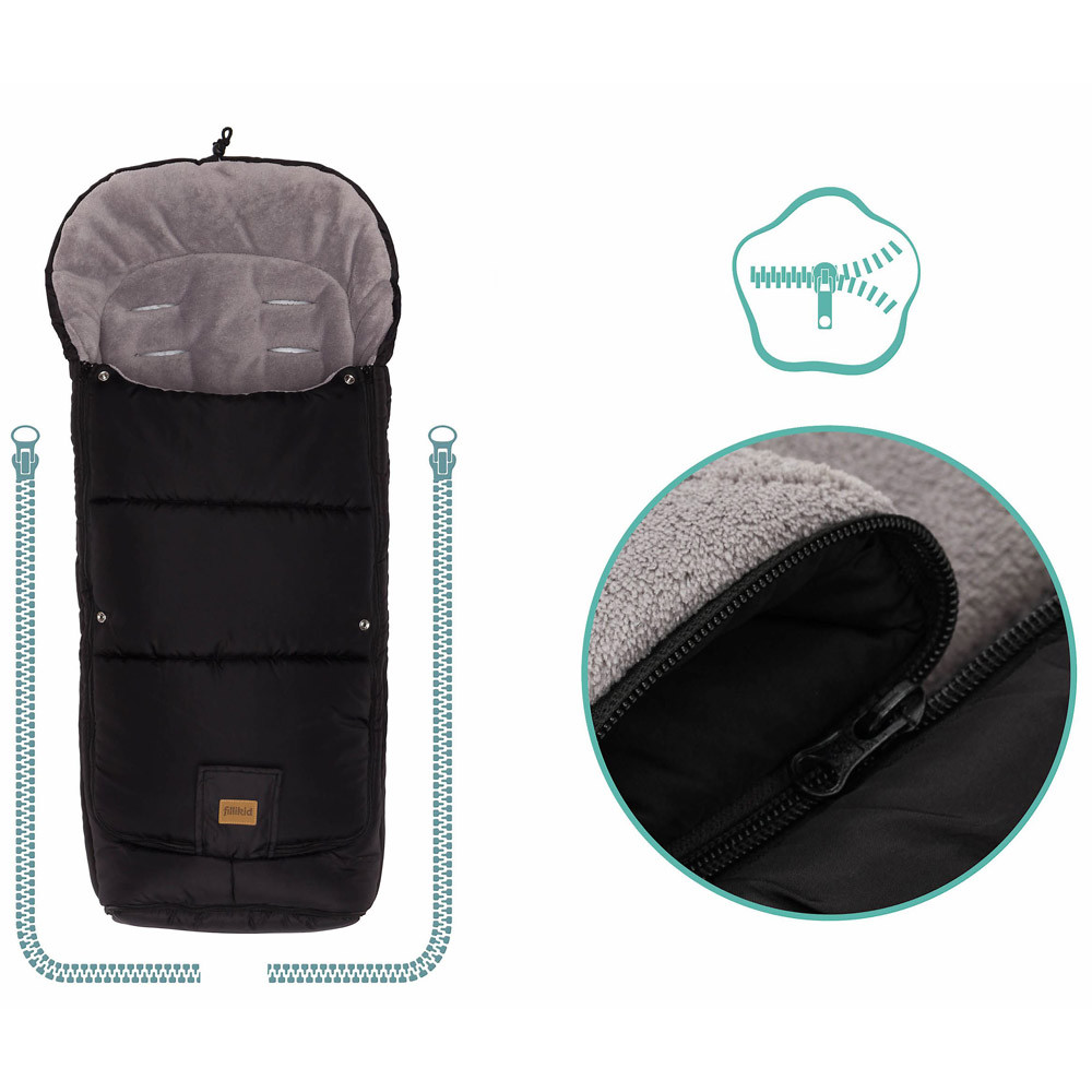 A Fillikid "Peak" téli lábzsák kiváló kényelmet és meleget biztosít gyermeke számára. Minden szabványos babakocsimodellel kompatibilis, intelligens kialakítása lábnyitással, övnyílásokkal, nyitógombokkal és csúszásgátló hátrésszel rendelkezik, ami biztos tartást biztosít séta közben. Kiváló minőségű, szélálló, vízlepergető anyagokból készült lábzsák. A külső réteg rendkívül tartós poliészterből, a belső réteg pedig puha coral fleece anyagból készült. Könnyű kezelni, mivel 30°C-on mosógépben mosható. Adja meg gyermekének a legjobbat a Fillikid „Peak” téli lábzsákkal.