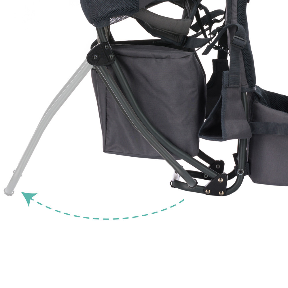 A háttámla szellőztető rendszerének és a vállpántoknak köszönhetően akár hosszabb túrákon is élvezheti a kellemes hűsítést. A gyermekülés alatt található tágas tárolórekesz sokféle edény szállítását teszi lehetővé. Két további palack-rekesz elegendő helyet biztosít az ivópalackok számára.