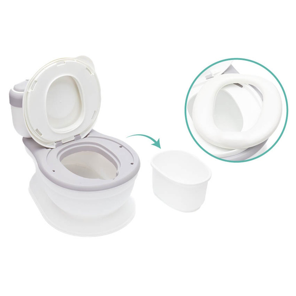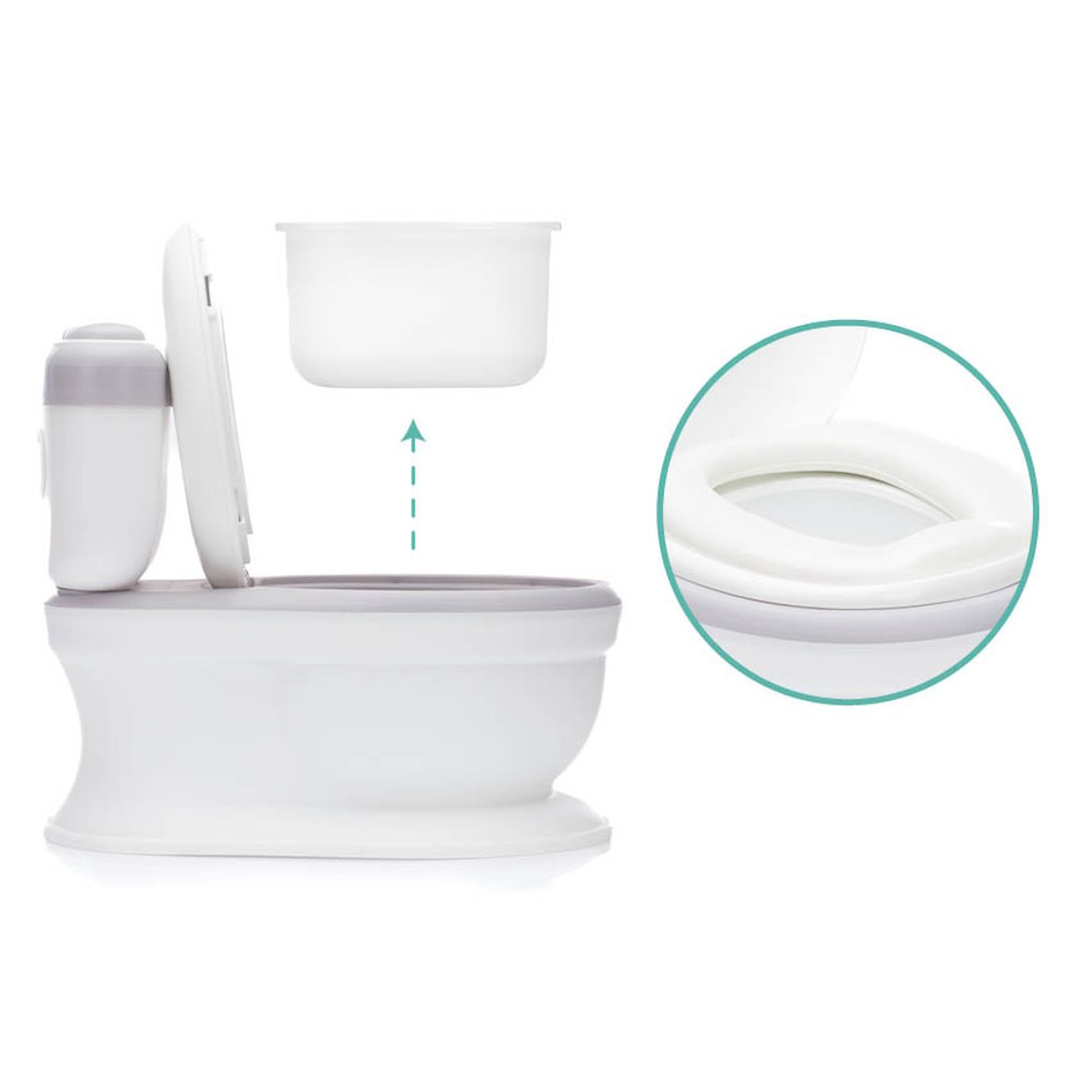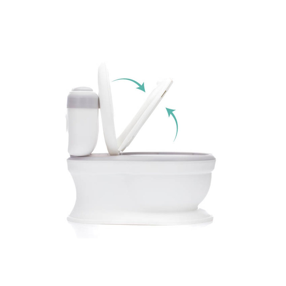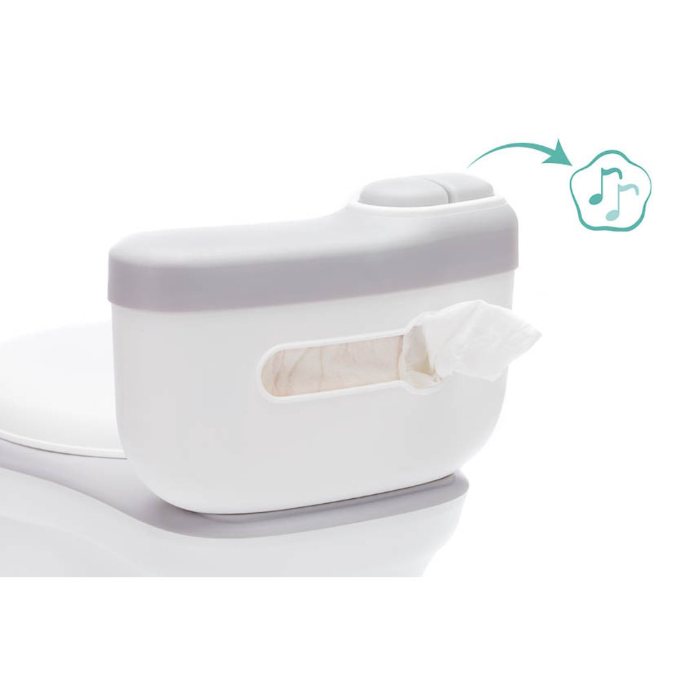 Ezzel a gyerekbarát WC-vel a saját WC használatára való átállás nemcsak zökkenőmentes, hanem rendkívül izgalmas is lesz! A dizájn kifejezetten a gyermek igényeihez lett igazítva, és a kicsi igazi felnőttnek érezheti magát a Mini Toilet Marlin használatakor. A WC praktikus tárolórekesszel rendelkezik a tartályon, amely tökéletesen alkalmas nedves törlőkendők vagy WC-papír tárolására. A Mini Toilet Marlin még élethűbbé teszi a WC-használat élményét. A WC alakú bilit egy öblítő hang és hat gyermekbarát dallam teszi még valóságosabbá és szórakoztatóbbá.