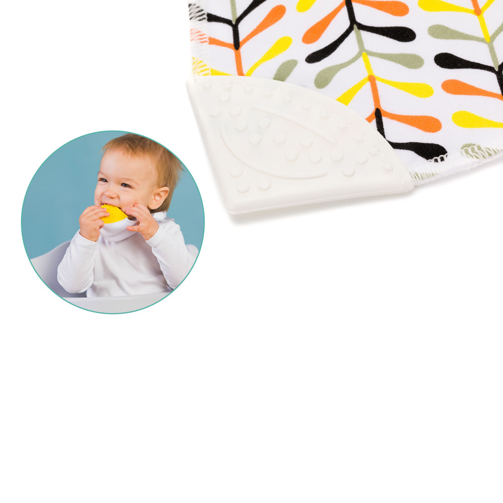 A háromszög alakú nyálkendő rágókával nagyszerű 2 az 1-ben funkciót kínál. Egyrészt a baba rághatja a kendőt a fogzás során, és így fogzást segítőként szolgál, másrészt a nyálkendő nedvszívó anyaga segítségével a ruhái tiszták maradnak. A nyakrészben található patentoknak köszönhetően az előke egyszerűen együtt nő gyermekével.