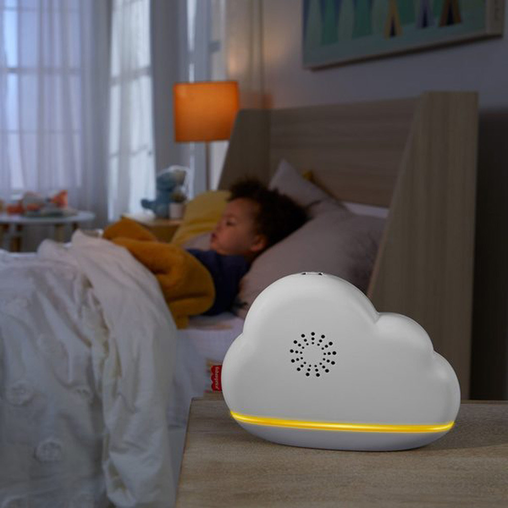 Az újszülöttek nézegethetik a színes, forgó napocskákat és felhőket miközben a kellemes, 20 perces zenei aláfestés elringatja őket. Az eszköz különlegessége a hangérzékelő, ami automatikusan újraindítja a forgást és a zenéket, ha a baba hangot ad ki. A megnyugtató zenék idővel emlékeztetni fogják a kicsit, hogy alvásidő van, ahogy pedig növekszik, a forgó részt levéve, asztali, zenélő éjszakai lámpává alakítható.