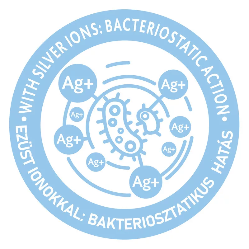 Ezüst ionokkal dúsított szivacs bakteriosztatikus hatást fejt ki, amely segít megelőzni a baktériumok szaporodását és a kellemetlen szagokat, valamint megőrzi a termék higiéniáját.