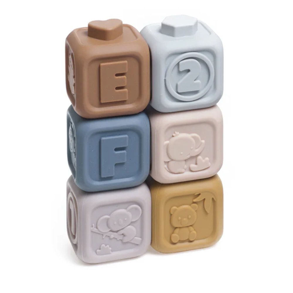 A kockák 100% élelmiszeripari szilikonból készültek, puhák és biztonságosak a kis kezek és a gyermek szája számára.