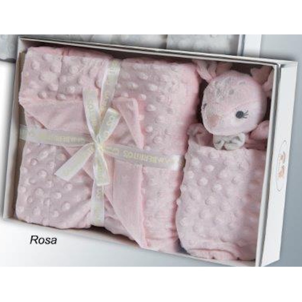 Gamberritos takaró plüss buborékos anyagú 80x110cm szundikendővel rózsaszín őzike 10887