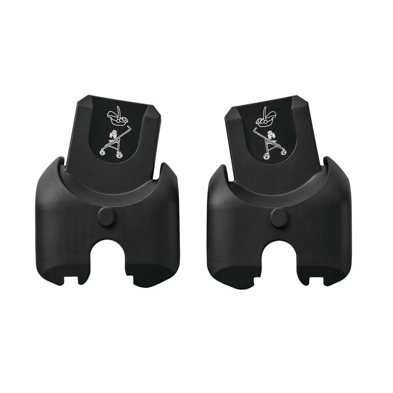 A gyerekülés-hordozó babakocsi-vázra helyezéséhez használatos 2 db adapter.