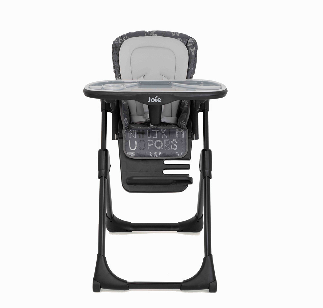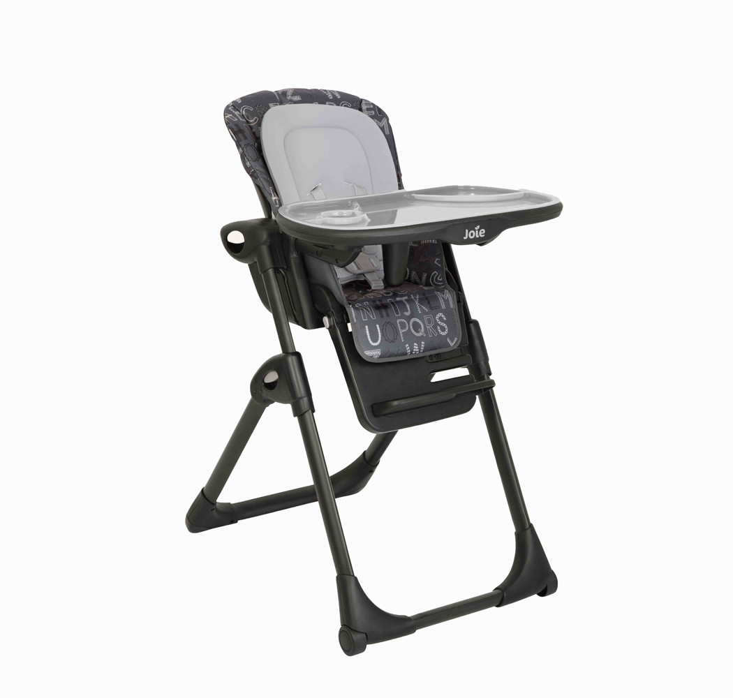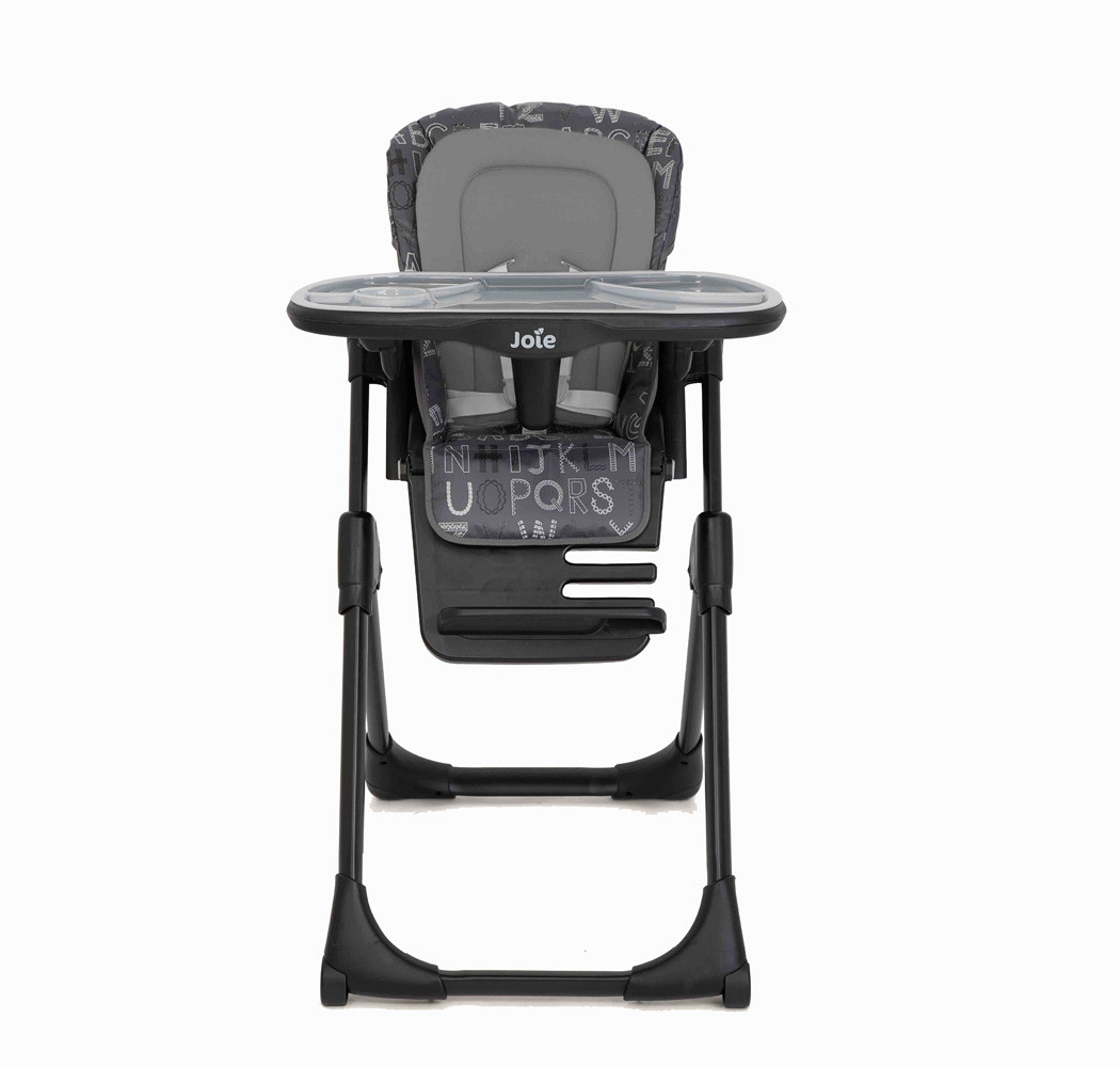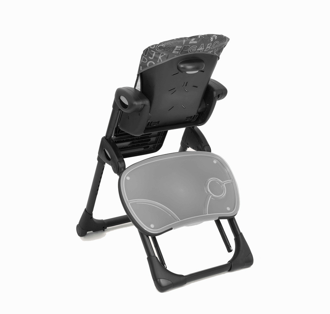 - A tálca az etetőszék hátulján, elérhető távolságban tárolható, az etetőszék ezzel együtt összecsukható