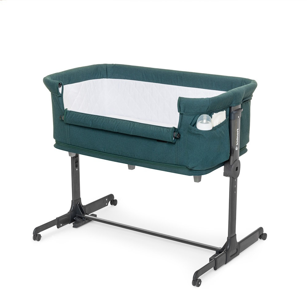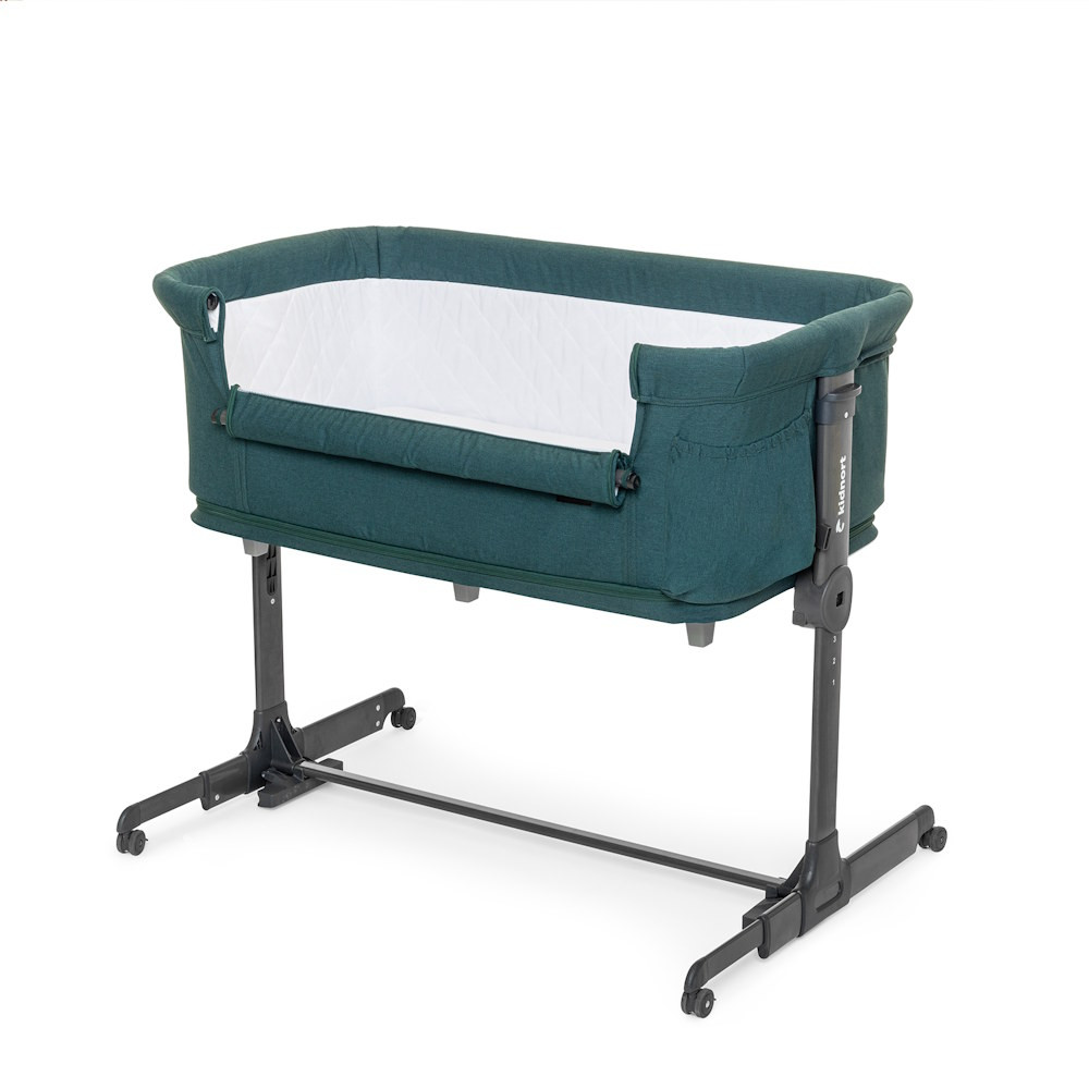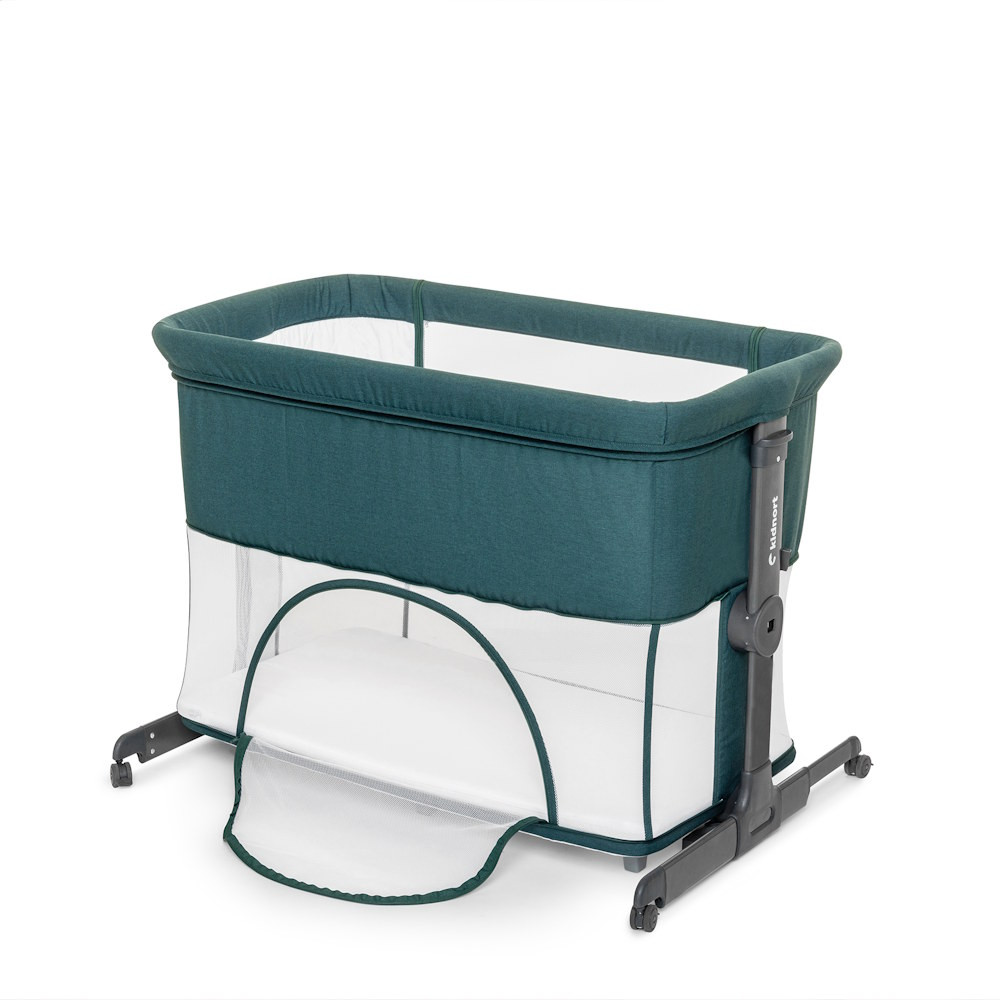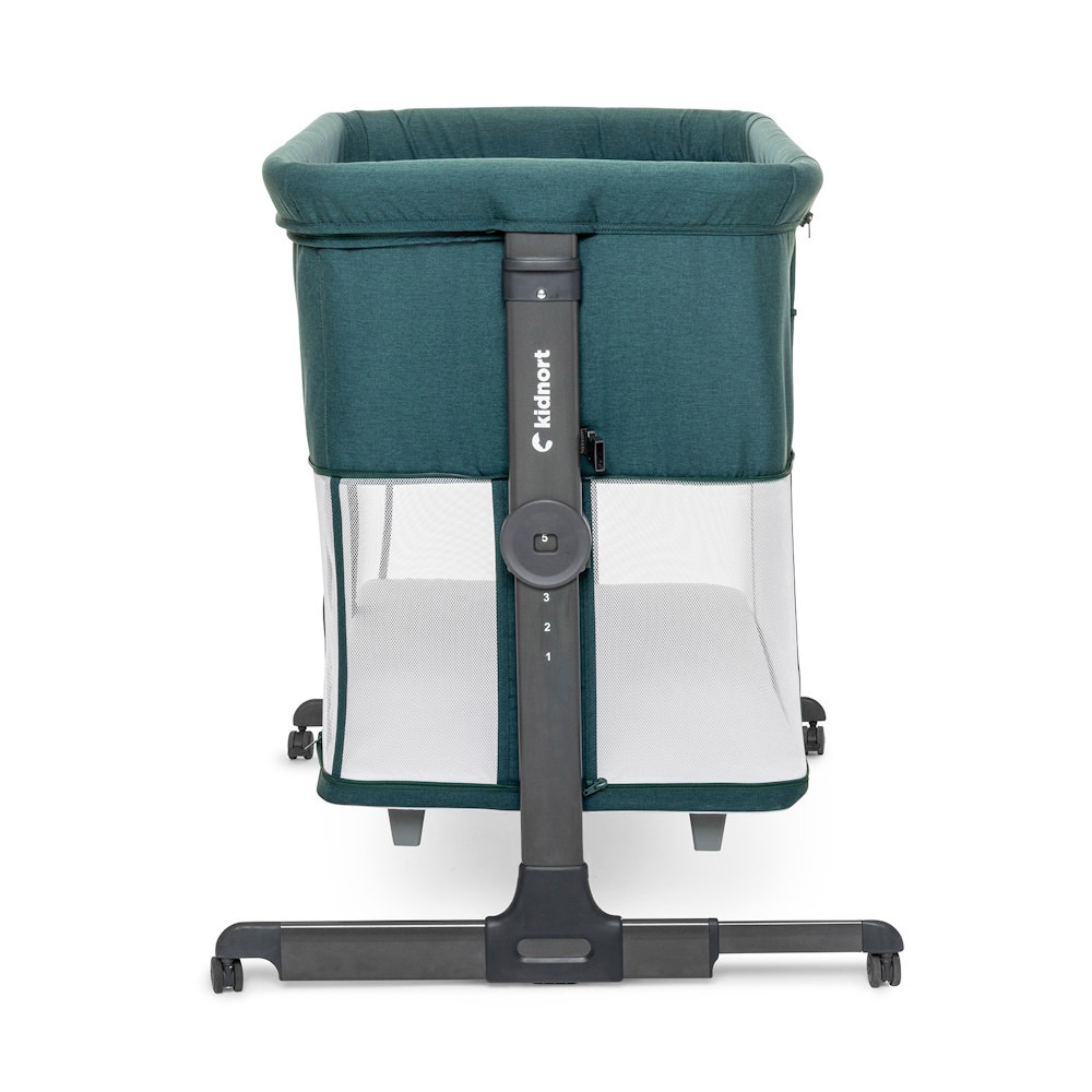 A kiságy kompakt módon összecsukható, és hordtáskával rendelkezik, így ideális utazáshoz vagy kisebb lakóterekbe. A négy fékezhető kerék megkönnyíti a szobáról szobára való mozgatást.
