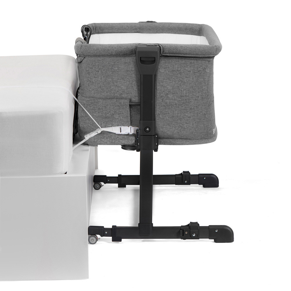 A kiságy kényelmes és könnyen tisztítható anyagból készült. A divatos árnyalatok minden belső térhez illenek. A kiságy huzata gépben mosható.