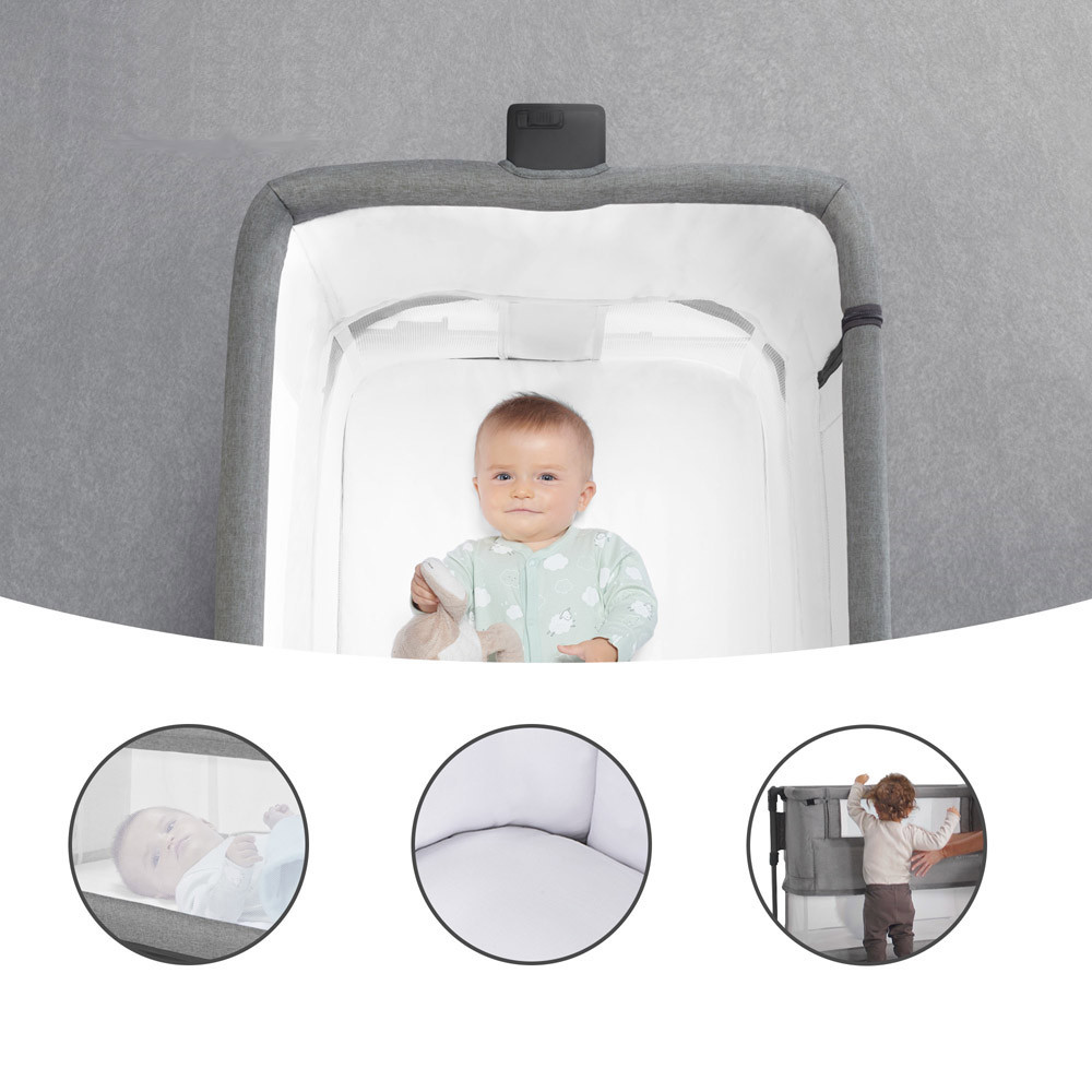 A kiságy kényelmes és könnyen tisztítható anyagból készült. A divatos árnyalatok minden belső térhez illenek. A kiságy huzata gépben mosható.