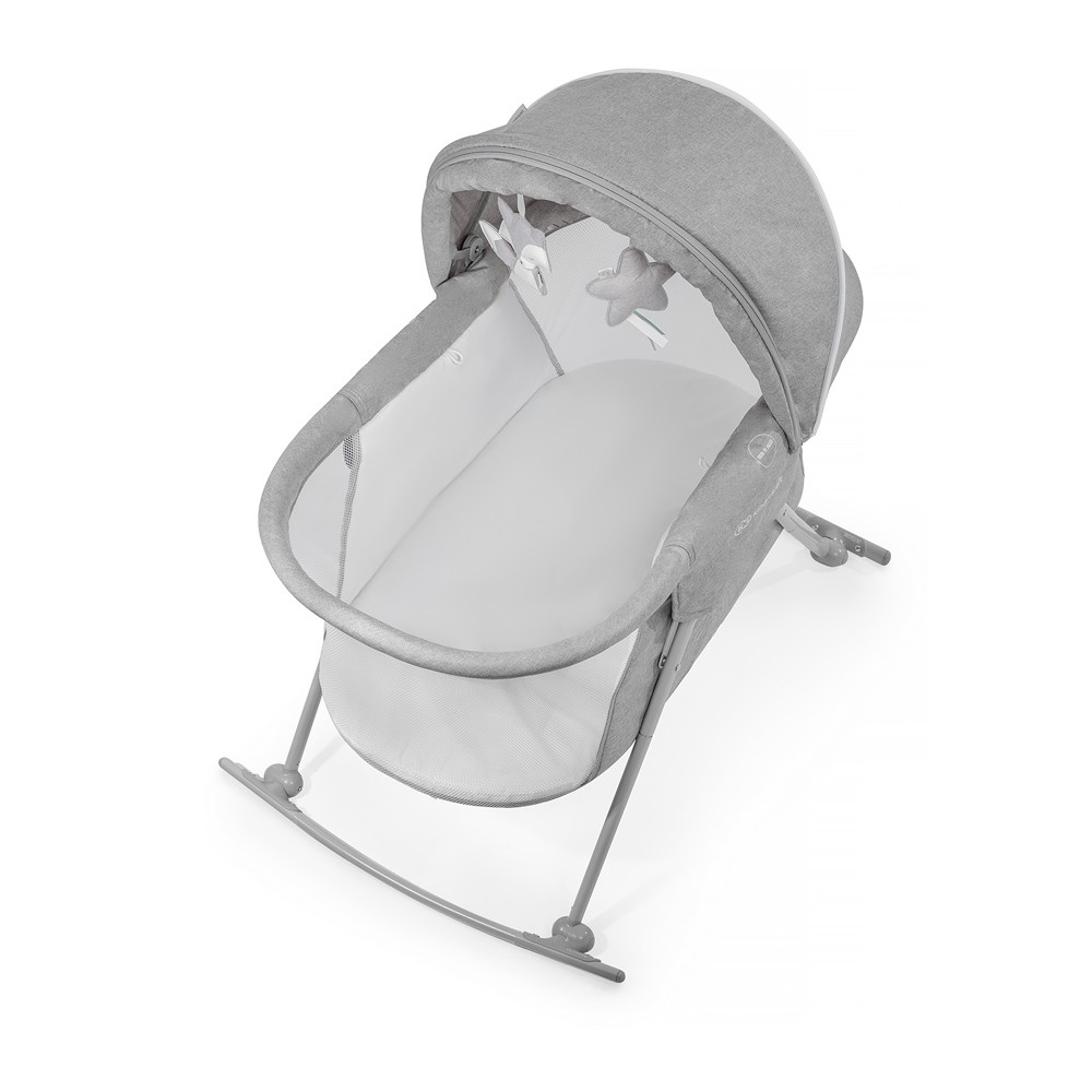 Praktikus három az egyben kiságy. Bölcsőként, otthoni vagy utazóágyként is használható. A tartozék tárolózsák megkönnyíti a szállítást, a beépített szúnyogháló pedig teljes védelmet nyújt a gyermekeinek, amikor kint tartózkodik. A szúnyogháló otthoni használat esetén könnyen lecipzározható és a kupolában tárolható.